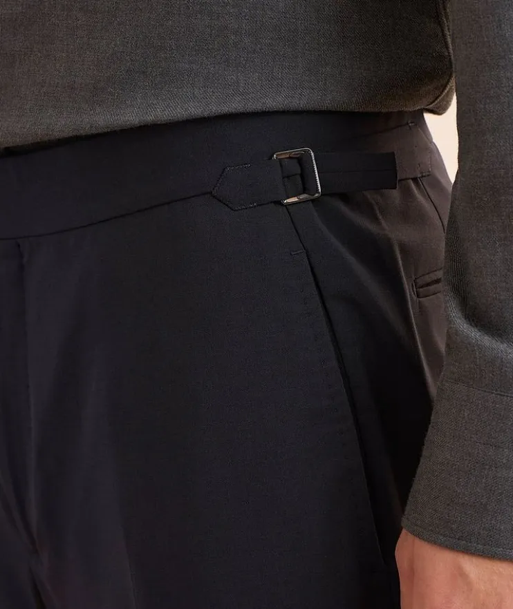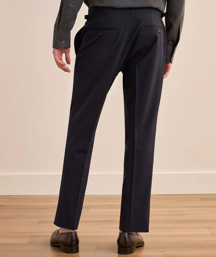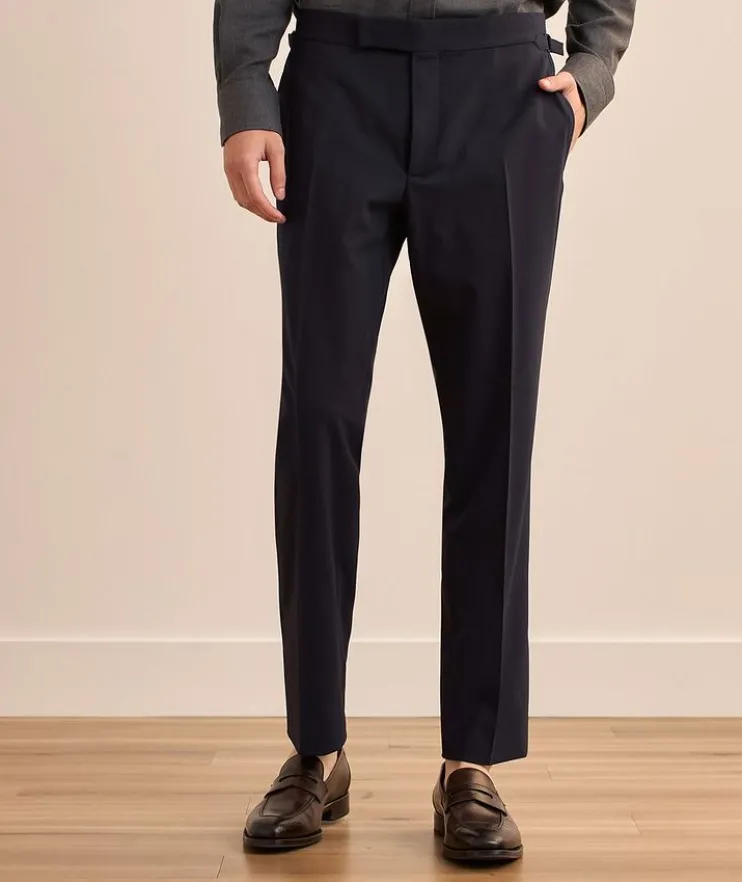 Constructed with a slightly tapered leg from smooth wool with subtle stretch for a refined yet comfortable fit, these dress pants are a timeless and elegant option for any formal setting. Crease details down the legs and waist adjusters create a flattering silhouette, while the plain weave design adds versatility to create endless ensembles.