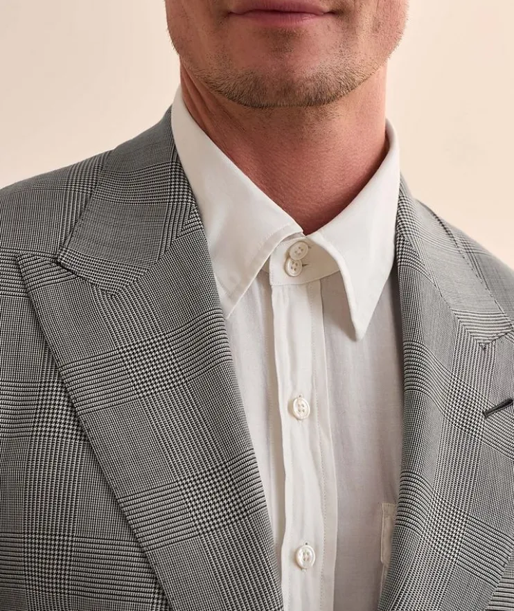 - This suit has been crafted in a slim fit, designed to sit close against the body.