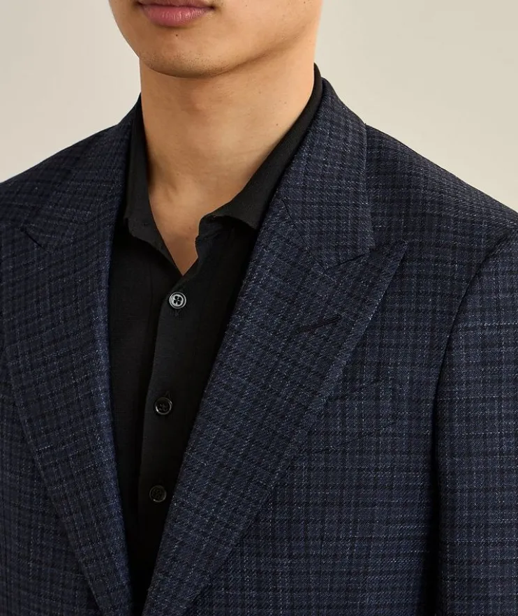 - Expertly crafted in Italy from a premium blend of wool, silk and linen, this unstructured sport jacket boasts a tonal check design for a sophisticated look that’s ideal for both formal and informal occasions.