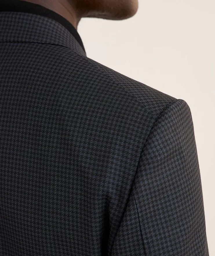 - Expertly tailored in a refined fit, this single-breasted silhouette makes for a timeless addition to any gentleman’s wardrobe. Constructed from premium wool with a touch of stretch for comfort and finished with a classic houndstooth pattern, this exquisite piece is a fine example of quality craftsmanship.
