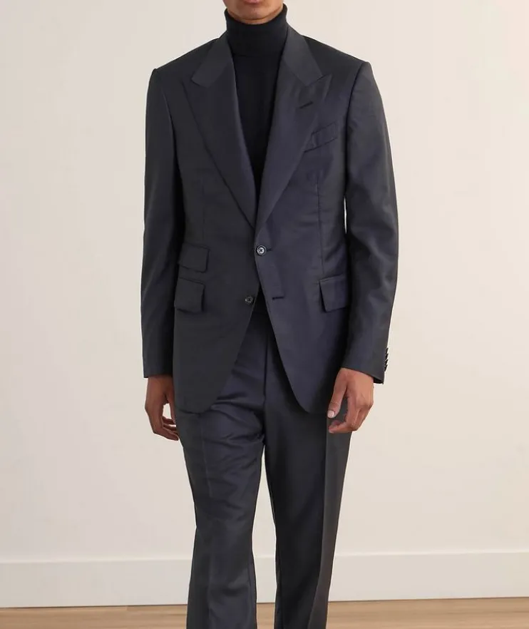 - This suit has been crafted in a slim fit, designed to sit close against the body.