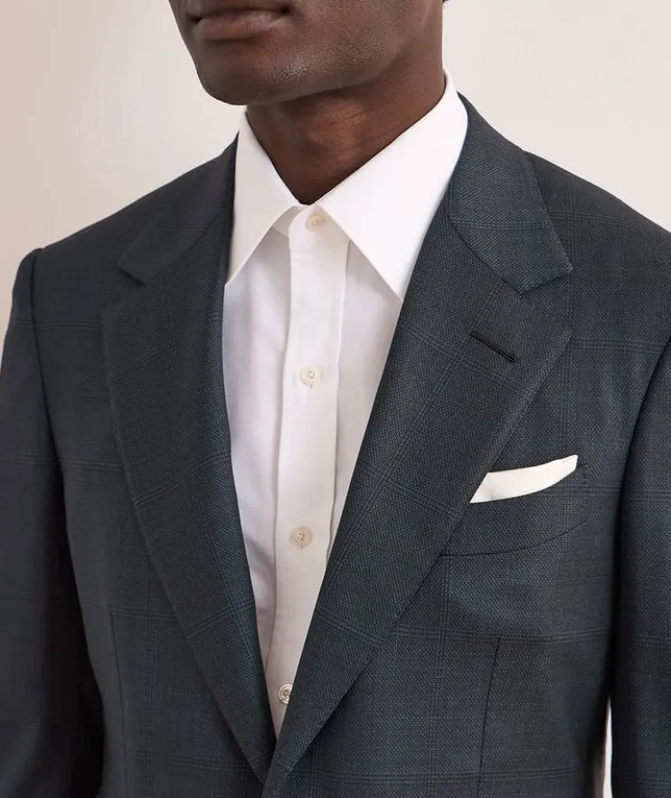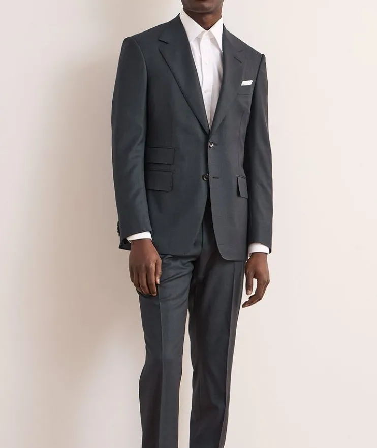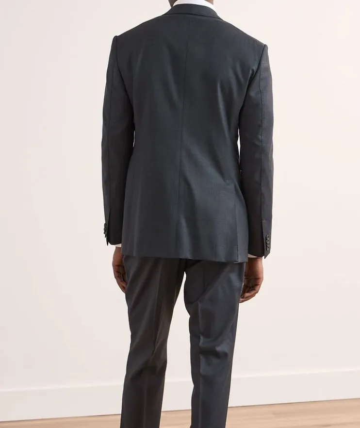- This suit has been crafted in a slim fit, designed to sit close against the body.