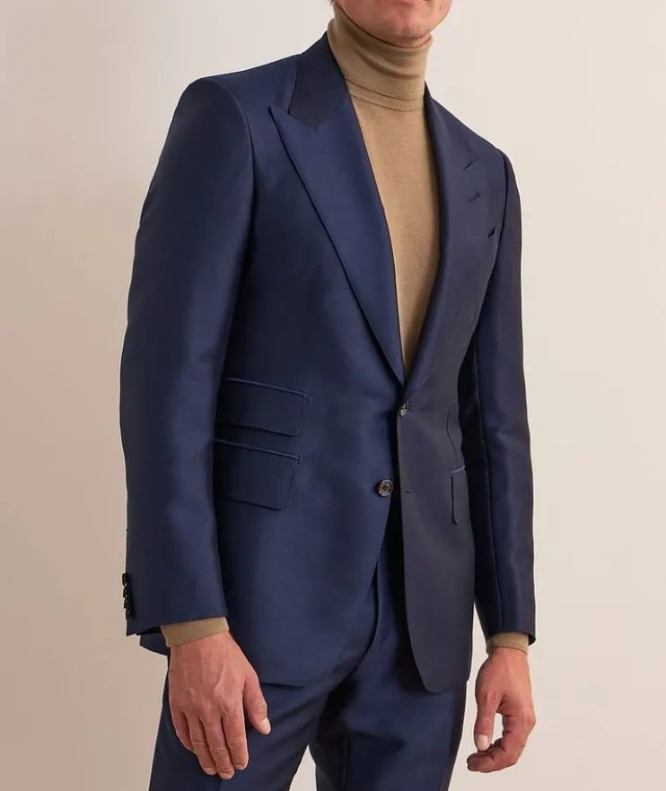 - Distinguished by its elegant design, Tom Ford’s Shelton jacket has been crafted from premium fabrics with meticulous attention to detail, offering a perfect blend of contemporary style and timeless sophistication.