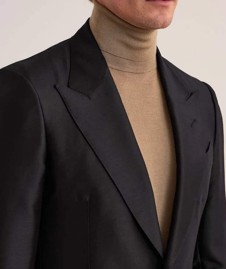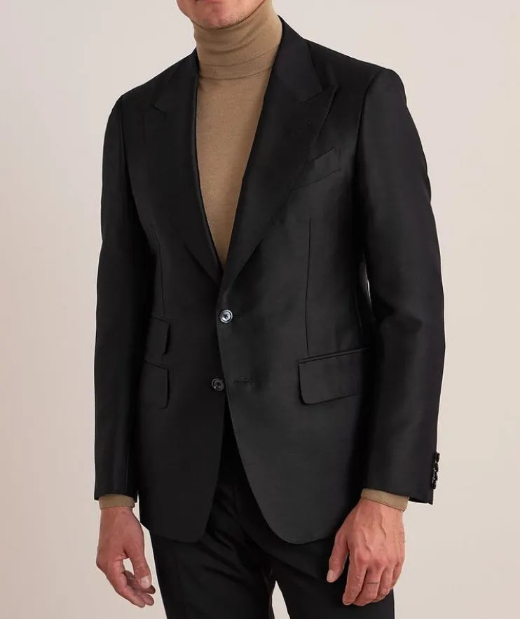- Distinguished by its elegant design, Tom Ford’s Shelton jacket has been crafted from premium fabrics with meticulous attention to detail, offering a perfect blend of contemporary style and timeless sophistication.