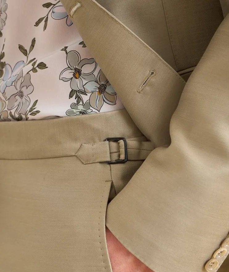 - Impeccably tailored from a blend of wool, mohair and silk in a smooth twill finish, this sleek suit features timeless details and quality craftsmanship. This garment is unfinished, alterations are required.