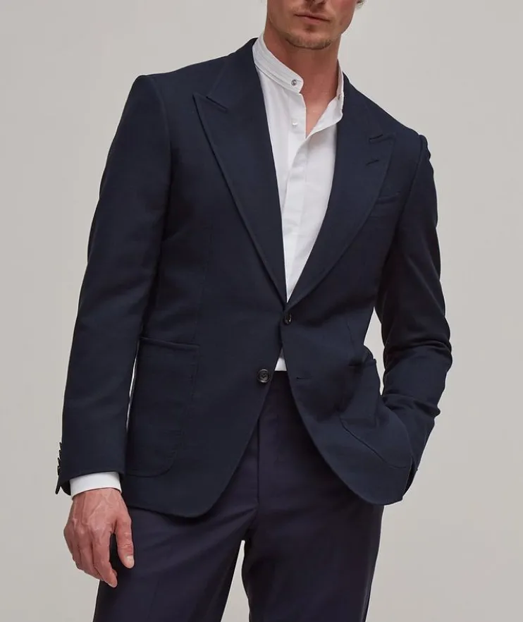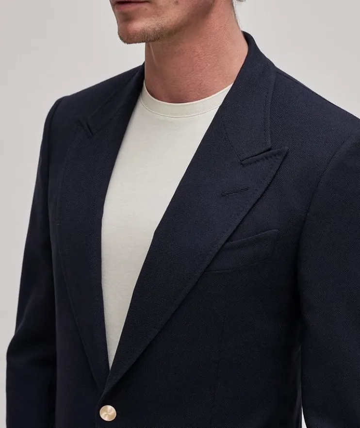 - This streamlined sport jacket reflects TOM FORD’s refined sensibility and attention to detail. It’s detailed with a peak lapel, gold buttons, and is crafted from a sumptuous, basketweave wool-mohair, and cut in the house’s sleek Shelton fit. Team the statement style with a standout necktie and tailored trousers to ensure a commanding presence.