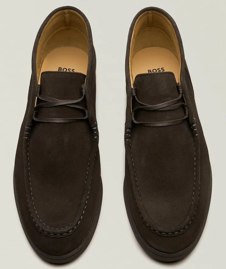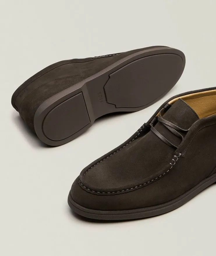 - These refined desert boots are crafted from smooth suede with an apron toe and can be easily dressed up or down for versatile styling.