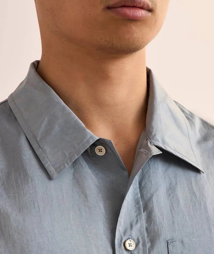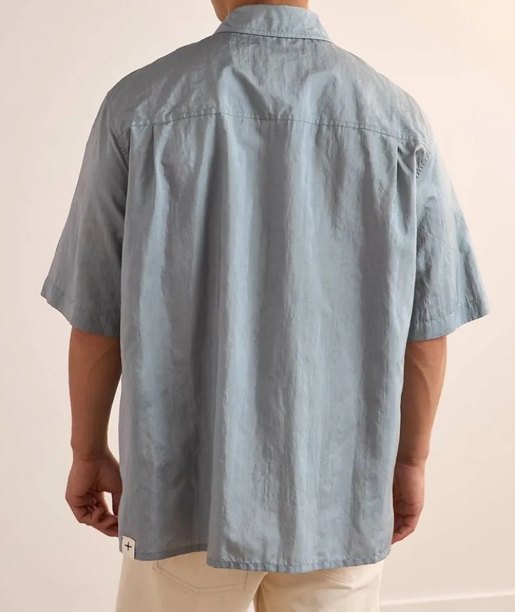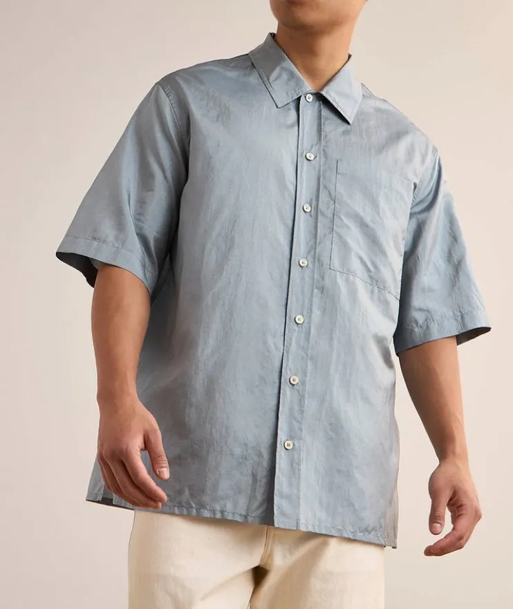 - Crafted from a shiny silk-blend in a relaxed fit, this short-sleeved camp shirt is perfect for the office or elevating casual ensembles. Clean lines and minimal detailing allow for a streamlined look and versatile styling.