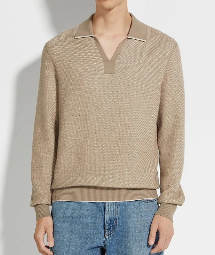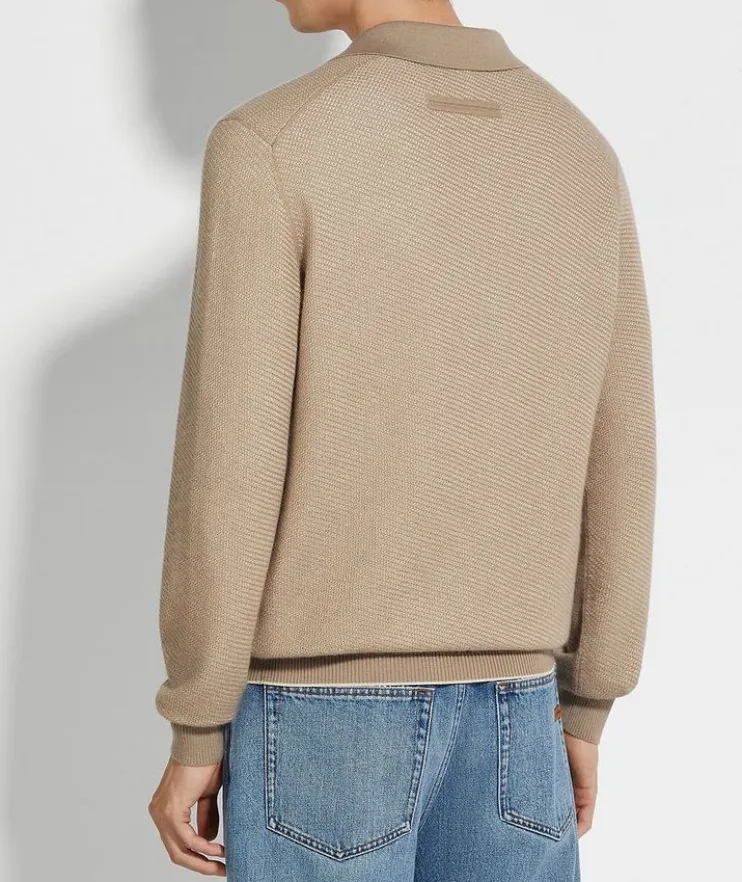 - Crafted from a refined silk and cashmere blend, this versatile polo shirt slots effortlessly into your everyday rotation. A jacquard pattern and intarsia collar bring dynamic charm to its timelessly elegant long-sleeve silhouette.