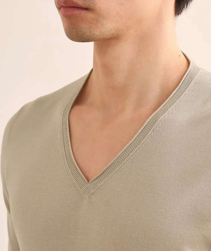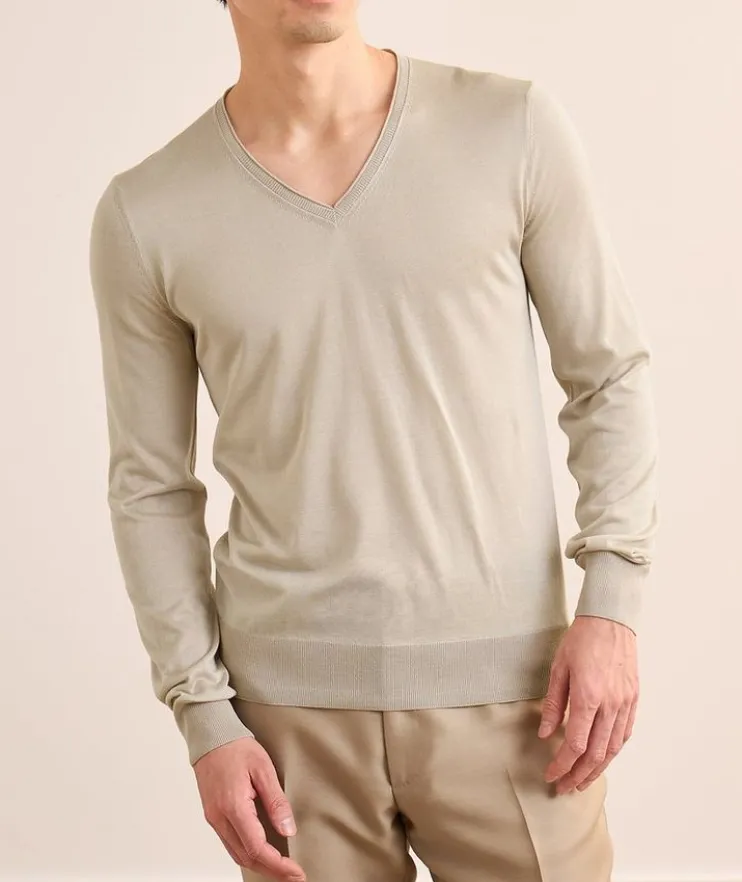 - This lightweight V-neck sweater is crafted from a premium blend of silk and cashmere and features a simple design for versatility and timeless style.