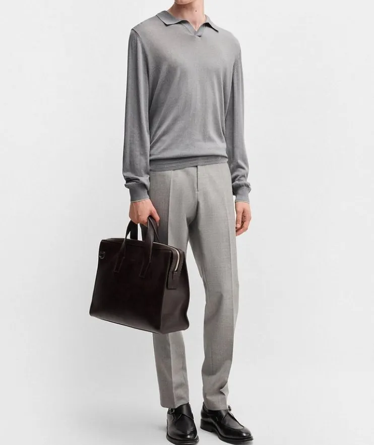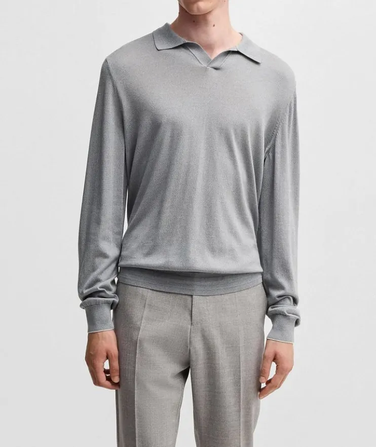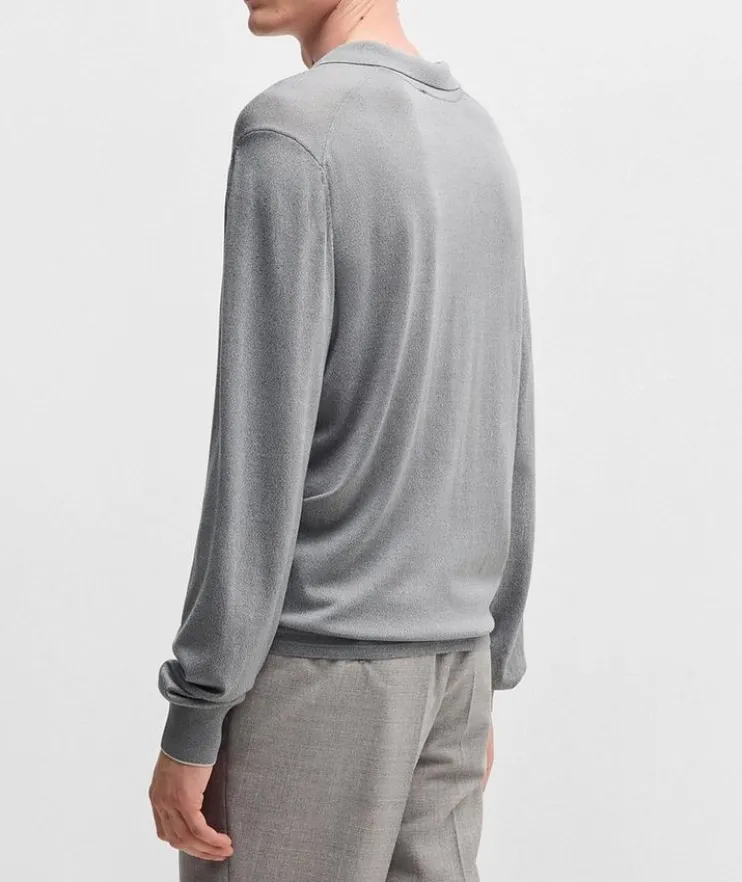 - An elegant sweater knitted in silk and cotton, cut to a regular fit and finished with a collar for a refined touch.