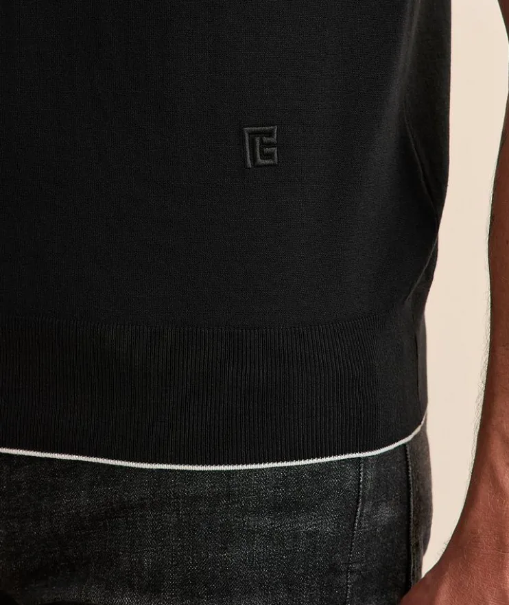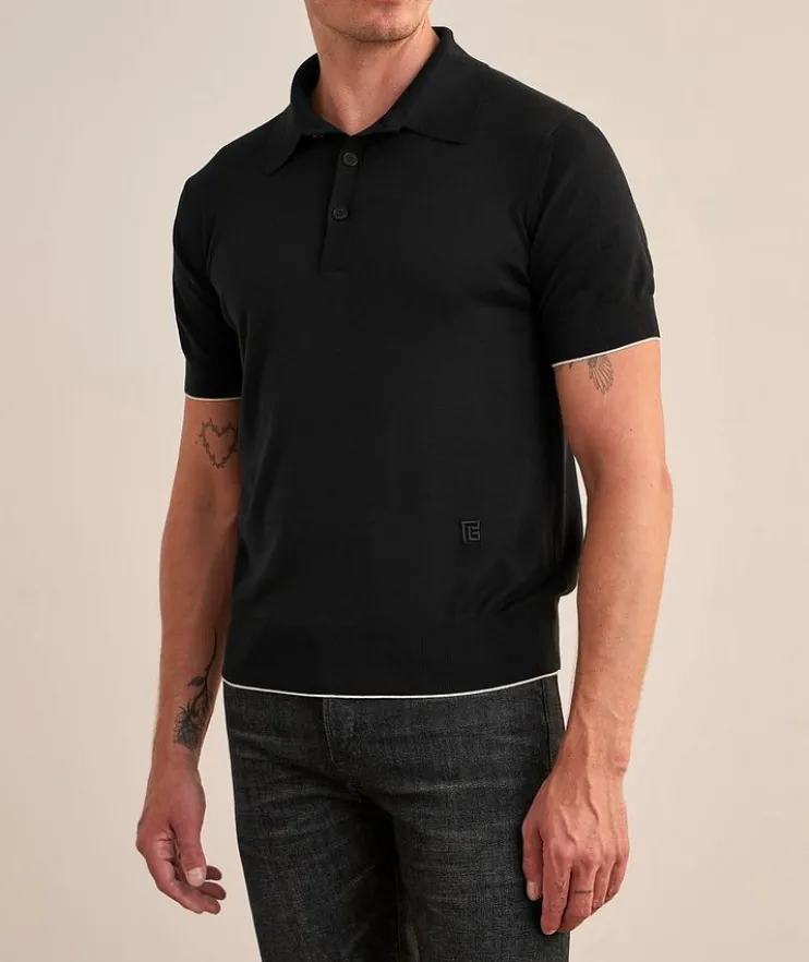- A versatile staple in any season, this knit polo is fashioned from a blend of breathable cotton and silk with stretch for added comfort. Decorated with a subtle logo detail and contrast piping, this top easily pairs with any bottom for a sporty-chic look.