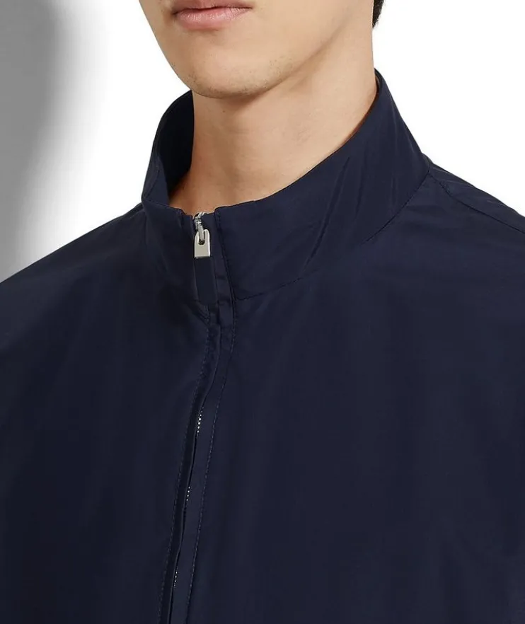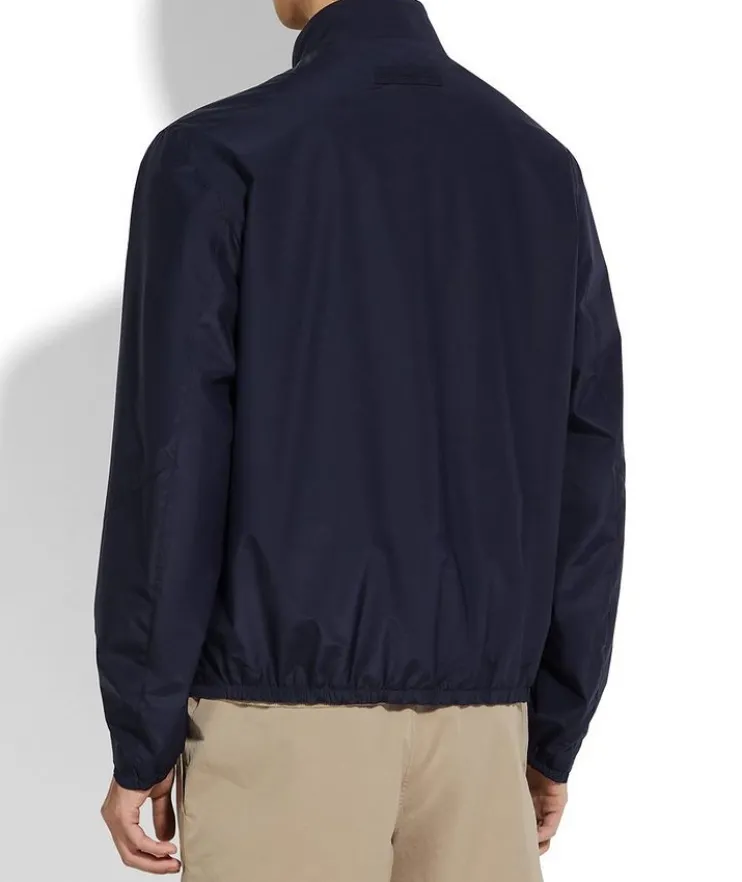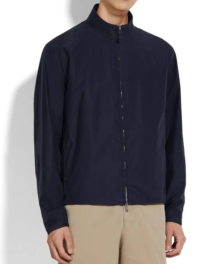 - Tailored for a fresh, updated silhouette with a stand collar and two-way zip closure, this blouson is crafted in supple silk for an elevated look and casual feel.
