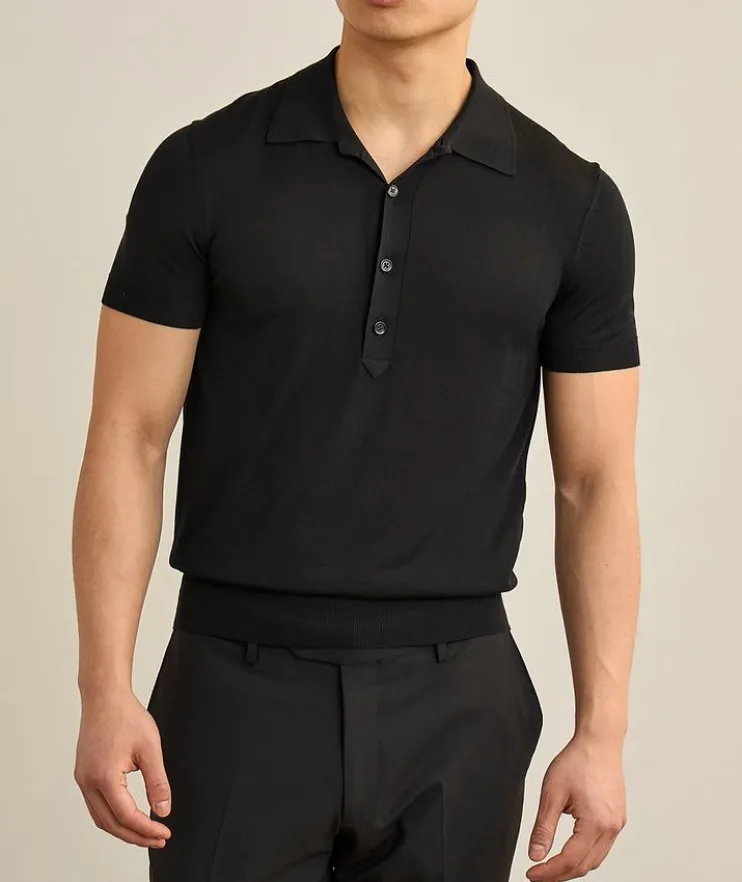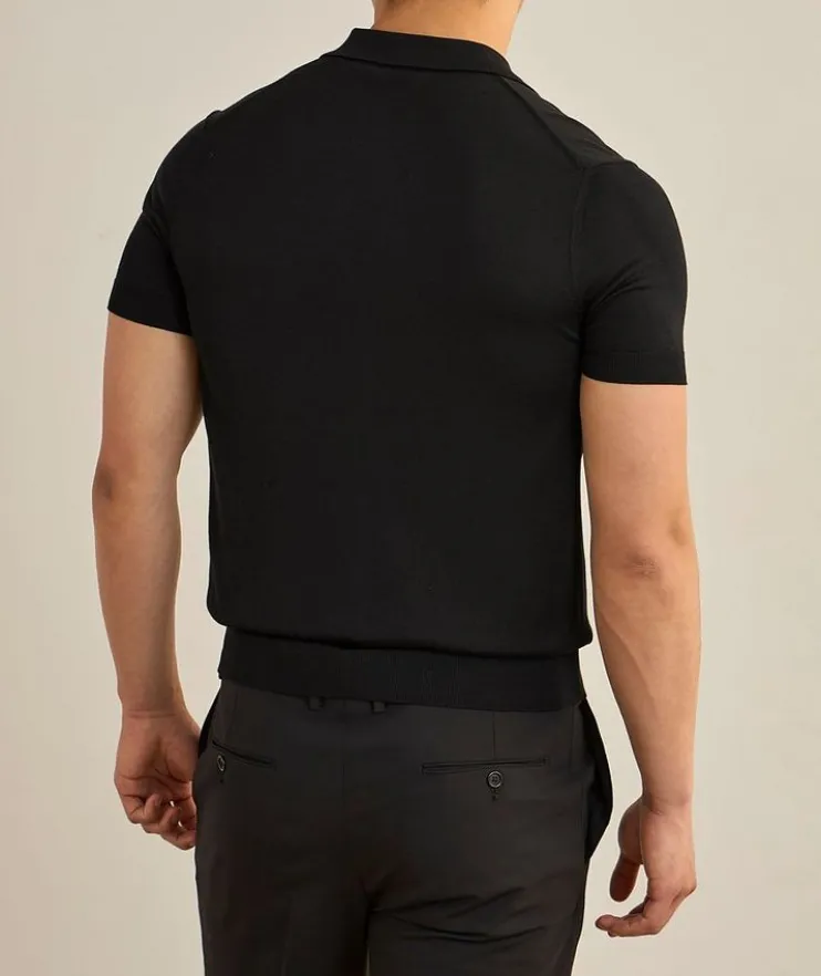 - Expertly crafted in Italy from a lightweight silk and viscose knit blend, this short-sleeved polo offers timeless sophistication and versatile styling for any occasion.