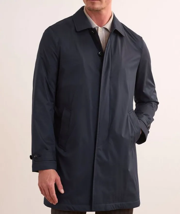 - Designed in a trench-inspired silhouette, this refined raincoat adds a sophisticated look to any ensemble.