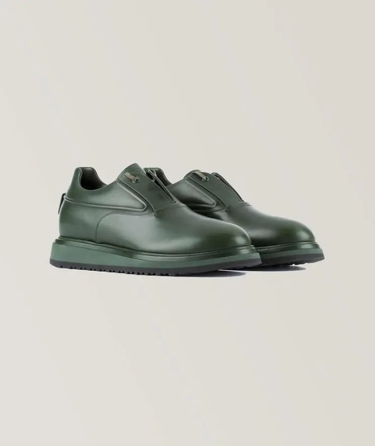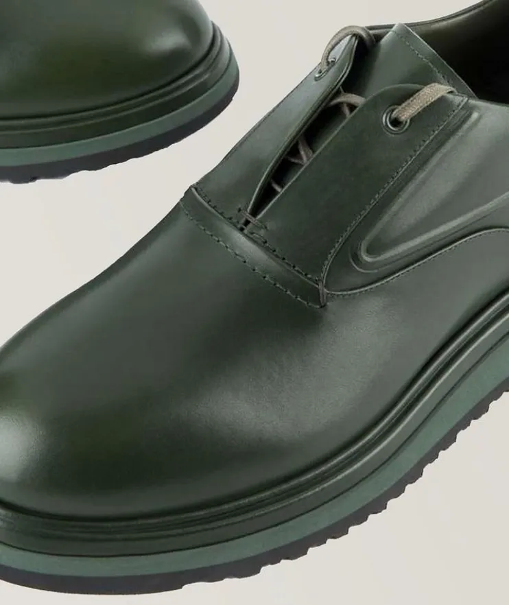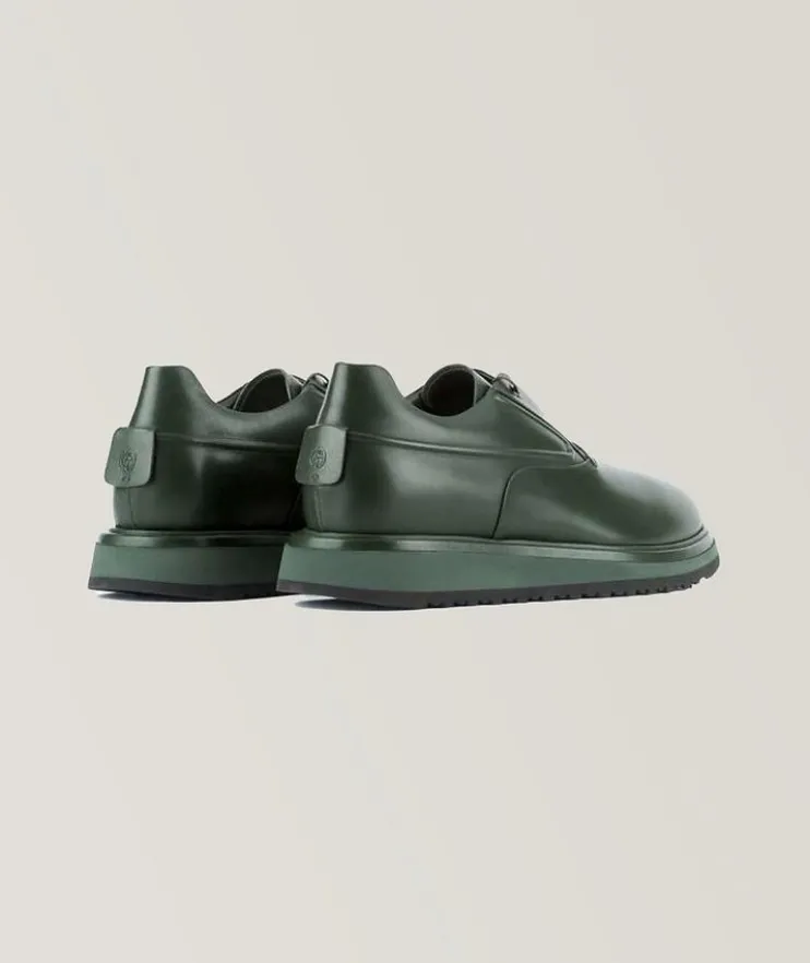 - Giorgio Armani gives the classic Derby a luxurious update with this polished style. Crafted in Italy from supple leather, they feature a glossy leather upper and leather lining. A round toe completes the look along with a single eyelet lace up. This pair is perfect for both business and semi-formal occasions; they’re best paired with tailored suits.