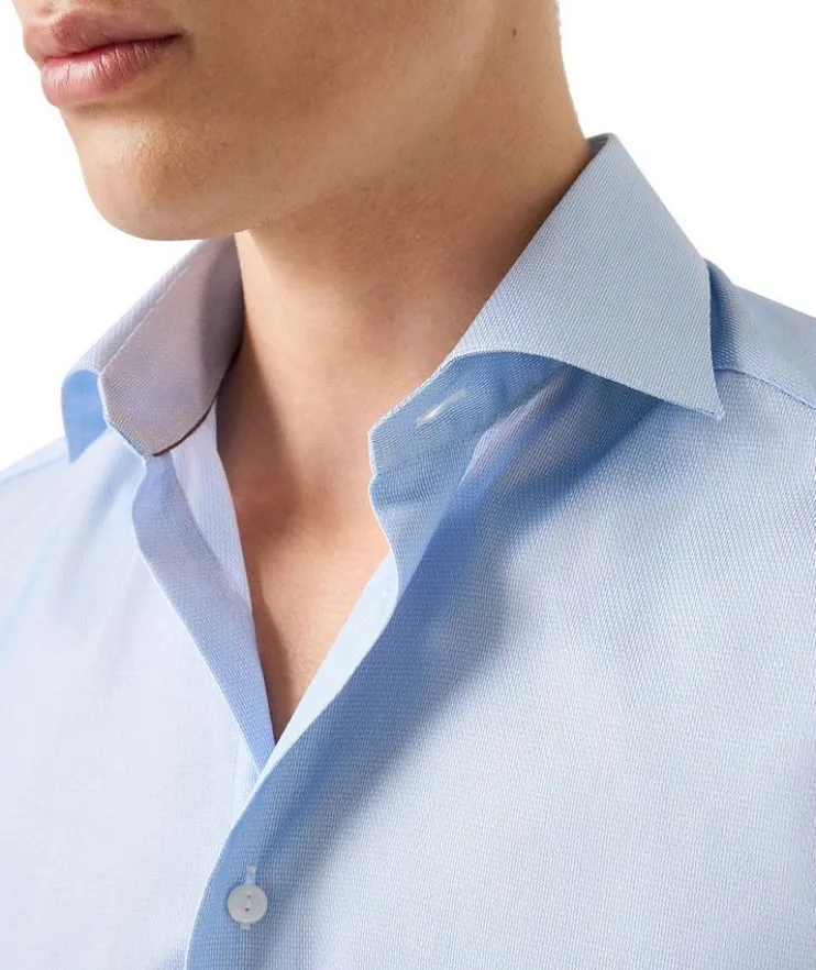 - This dress shirt has been crafted in a slim fit. A streamlined fit, slim through the chest, waist and sleeves.