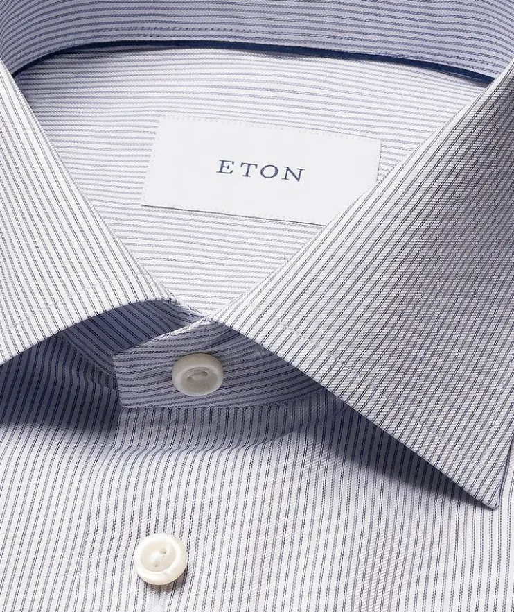 - A soft touch and wrinkle-resistant finish lend comfort and confidence to your business or smart casual style in this staple cotton shirt topped with a fine stripe pattern.