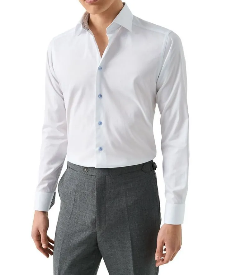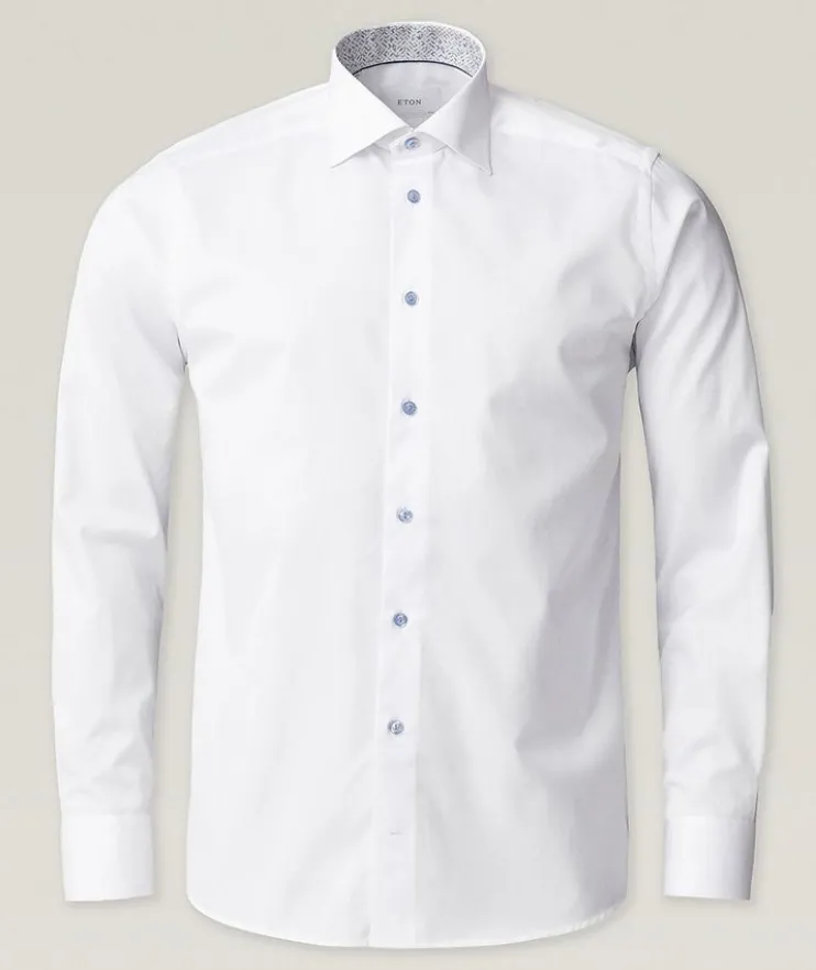 - Eton’s most iconic shirt is reimagined for the season with a geometric effect inside the collar and cuffs. Made from Signature Twill fabric, this design adds a stylish twist to the classic shirt.