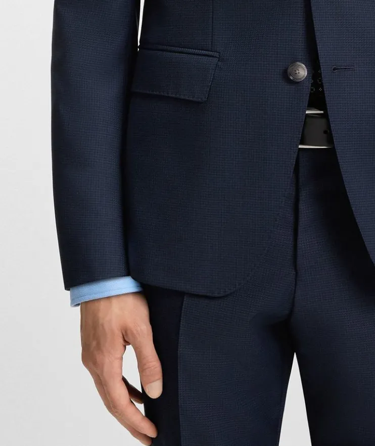 - This suit has been crafted in BOSS’ H – Fit, a slim and streamlined cut that fits very close to the body. The stretch fabric maintains comfort and movement.