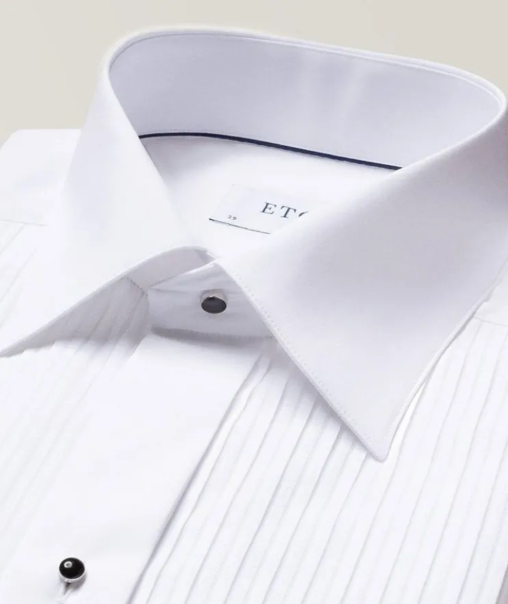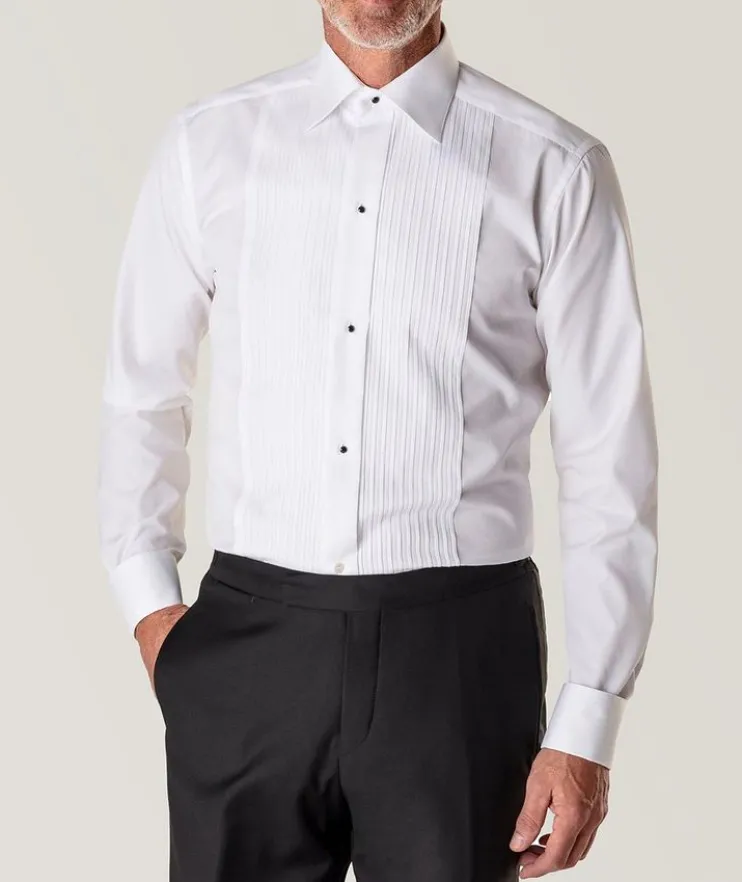 - An elevated tuxedo shirt for your most formal occasions. Eton’s slim fitting tuxedo shirt features a textured striping instead of the traditional tucks on a bib front shirt, setting a modern tone that will set your formal looks apart from the rest. This pure cotton shirt is a fitting backdrop for your favourite set of studs and cufflinks.