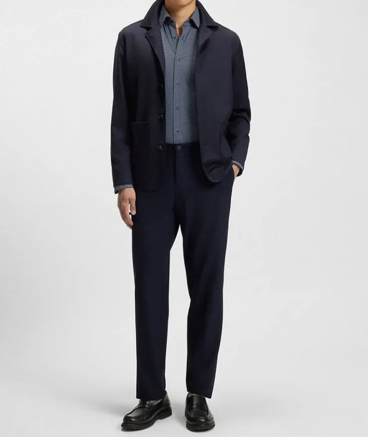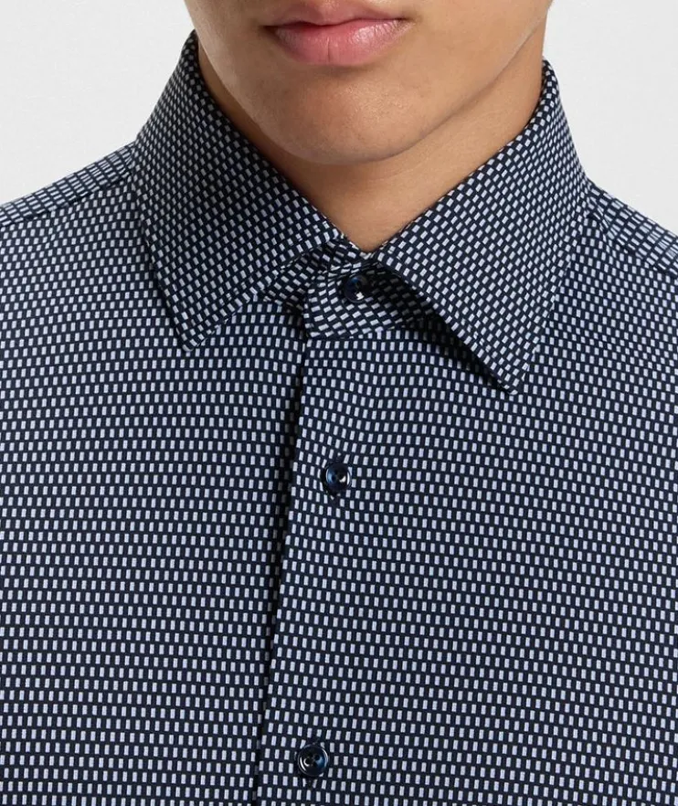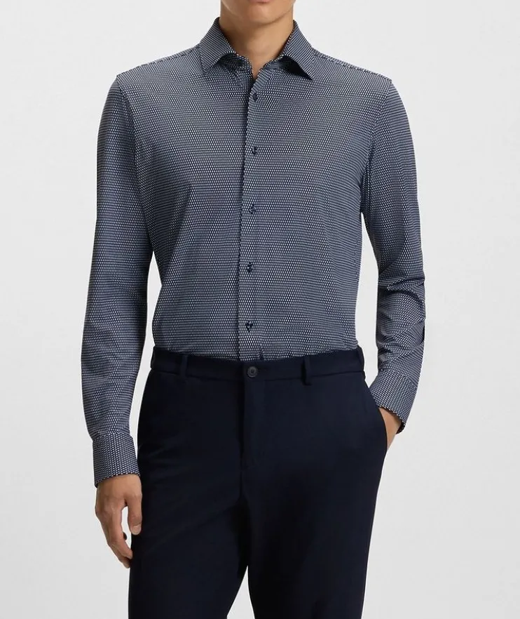 - This sleek shirt is crafted in a slim fit from performance stretch fabric with moisture management and excellent breathability for all-day comfort. Finished in a micro neat print for added visual interest.