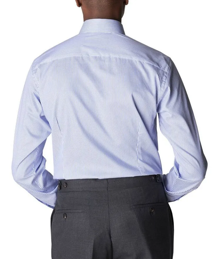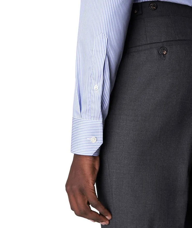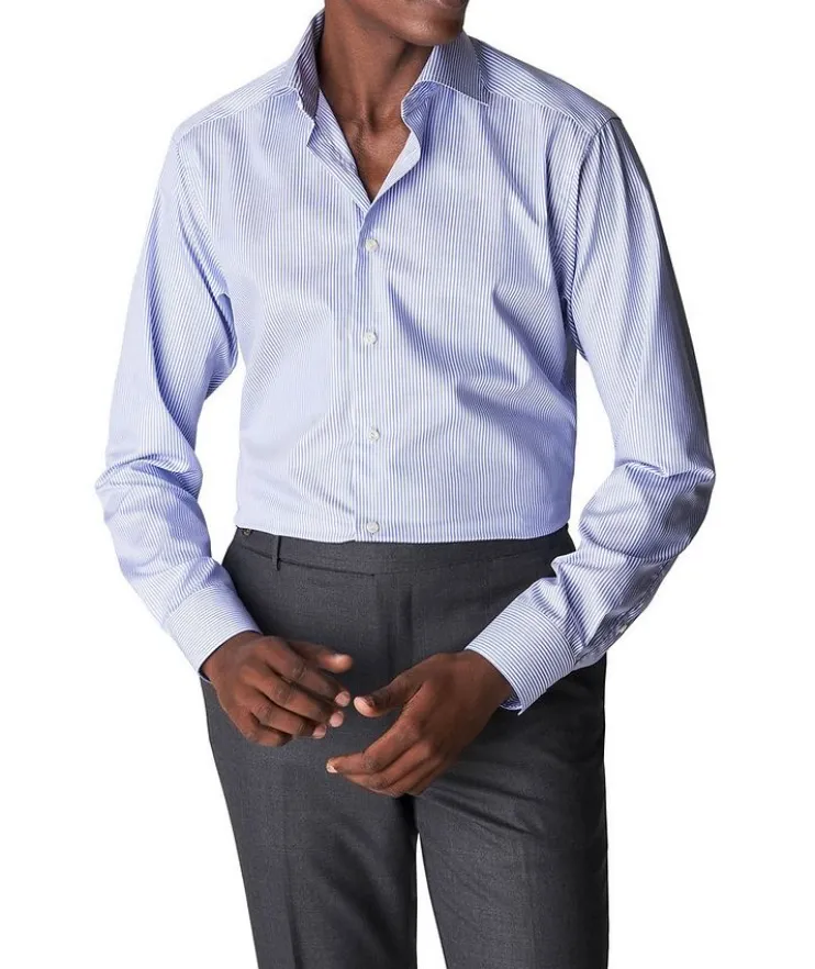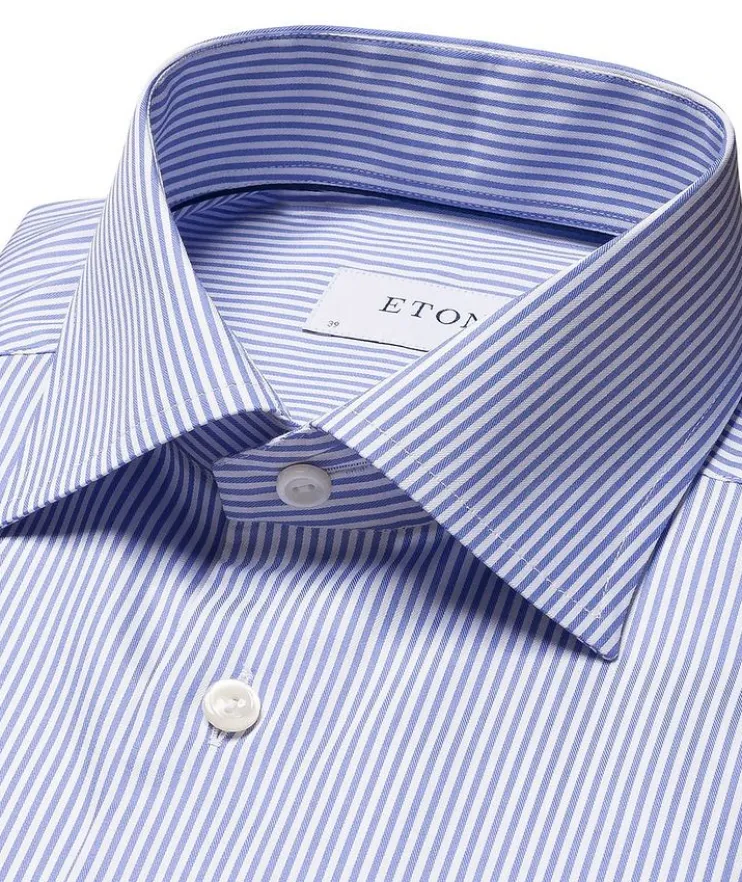 - When you’re opting for a sans-tie look, this slim-fitting striped dress shirt from Eton is the perfect option. Whether it’s being worn at the office or out for dinner with friends, you’ll look impeccable and effortlessly stylish. The eye-catching button-down has been crafted with longevity and uncompromising quality in mind. It is completed with the brand’s signature crease-resistant finish for a sharp morning-to-night appearance.