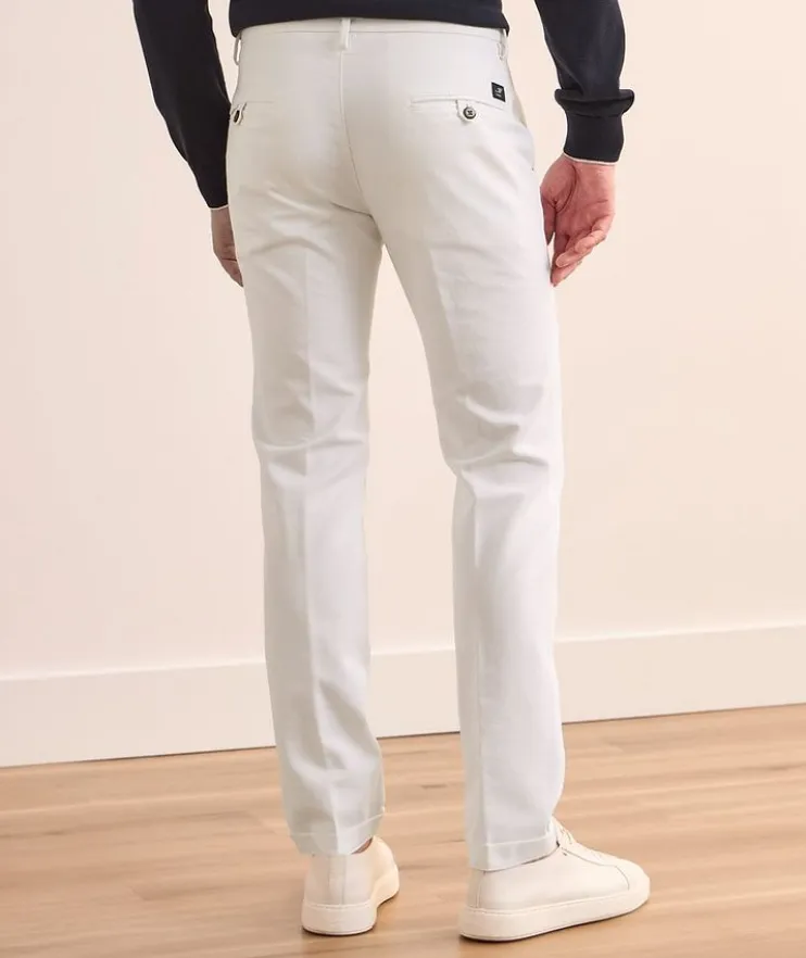- Mason’s is a master of tailored trousers with an emphasis on comfort and quality. This polished pair of chinos is crafted from a remarkably soft stretch-cotton jersey for ease of motion. The casual pants are cut with a slim leg for a flattering look with contemporary appeal.