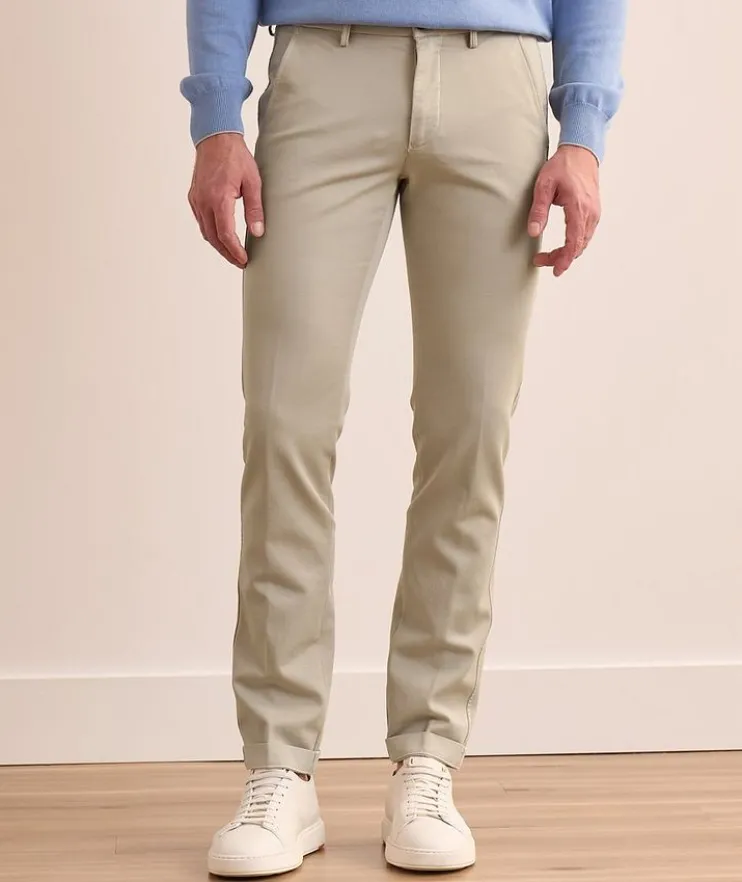 - Mason’s is a master of tailored trousers with an emphasis on comfort and quality. This polished pair of chinos is crafted from a remarkably soft stretch-cotton jersey for ease of motion. The casual pants are cut with a slim leg for a flattering look with contemporary appeal.
