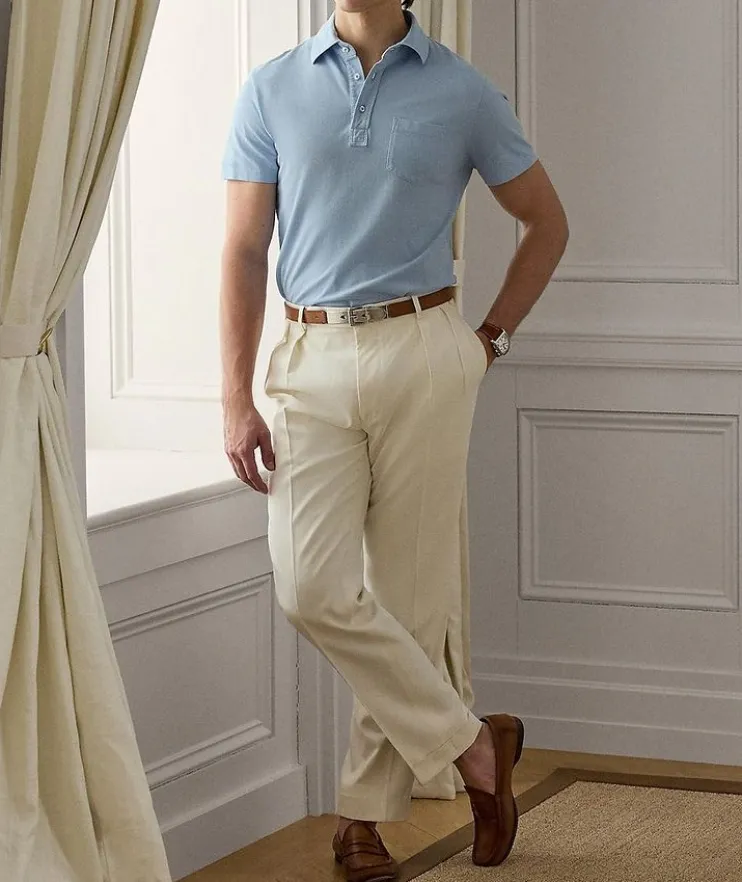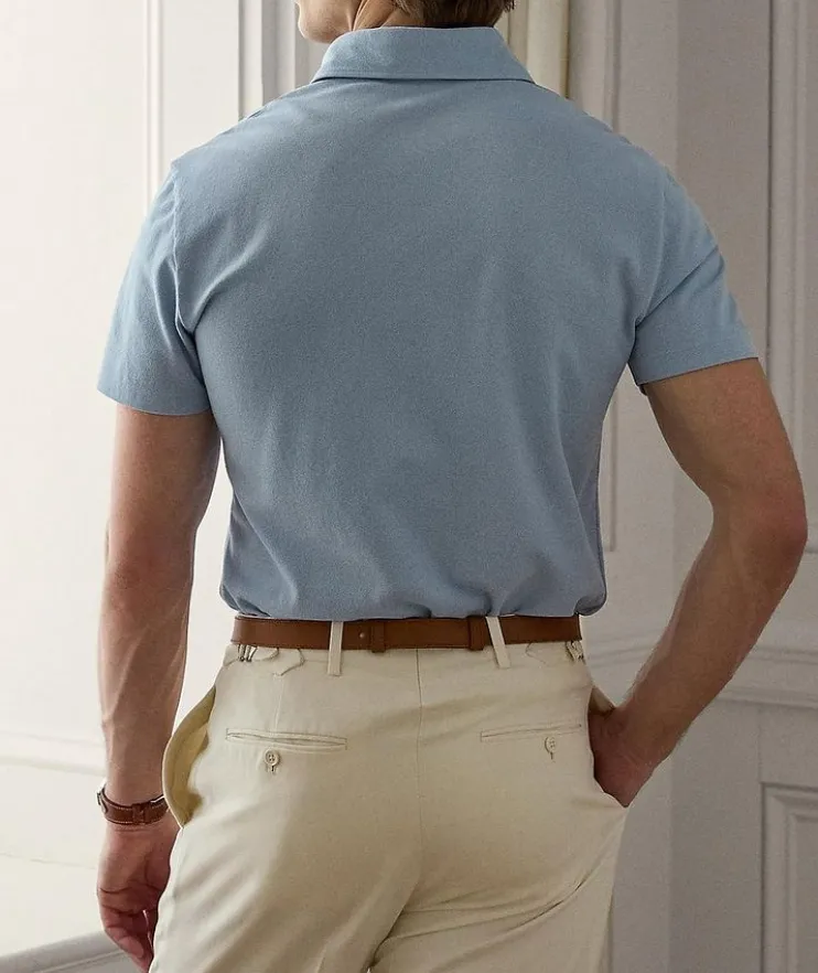 - This sporty-chic polo is crafted with custom-developed cotton piqué and washed for an incredibly soft texture. At the left sleeve, it is intricately embroidered with “Ralph Lauren” in script letters.