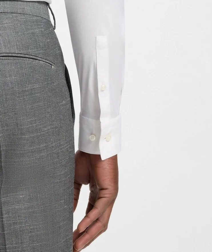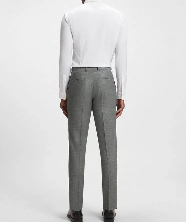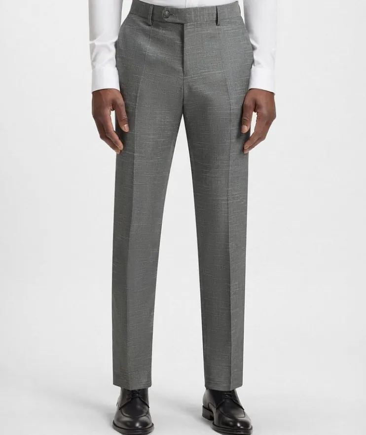 - A workwear essential, these classic dress pants are tailored a slim fit from a stretch-wool blend with cotton and linen. Finished with a refined pattern for easy styling.