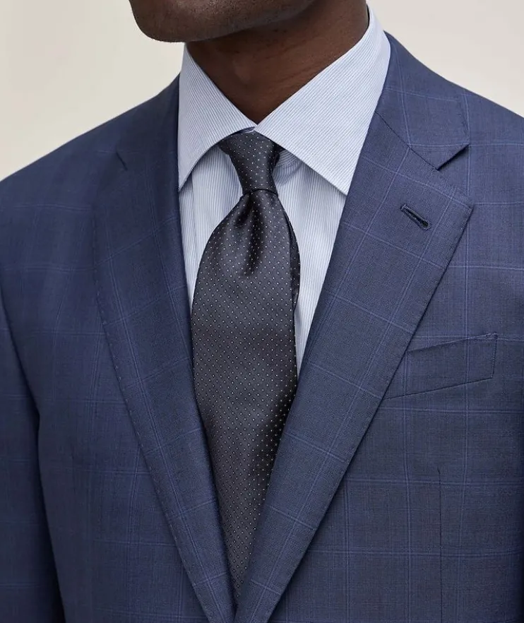 - Crafted from lustrous high quality wool-silk blend, the classic details complete the stylistic codes of the quintessential tailored suit.