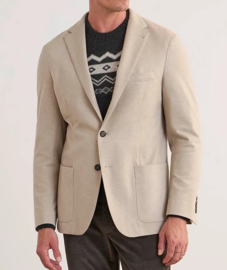 - Designed in a timeless single-breasted silhouette from a premium wool and cashmere fabrication, this classic sport jacket features an unstructured construction for a soft and unrestrictive wear. Finished with decorative logo buttons and patch pockets for a more casual look.