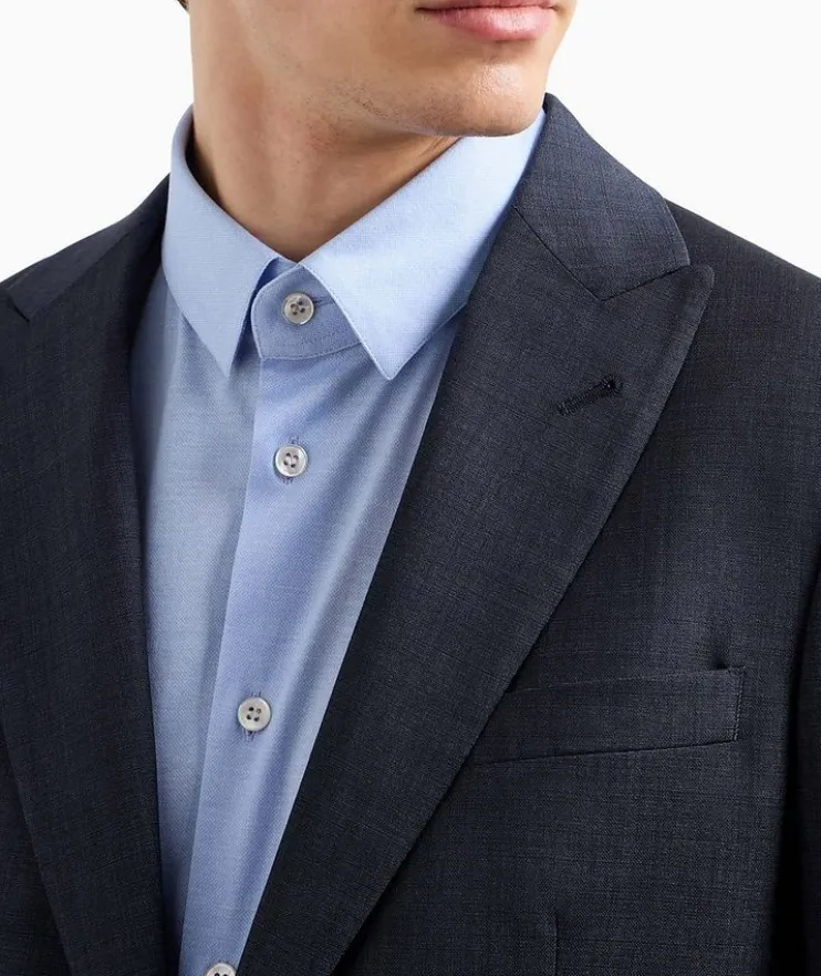 - Cut from a high-quality blend of wool and silk, this sophisticated suit is tailored with clean lines for a timeless look, while a chambray-effect finish adds a modern twist.