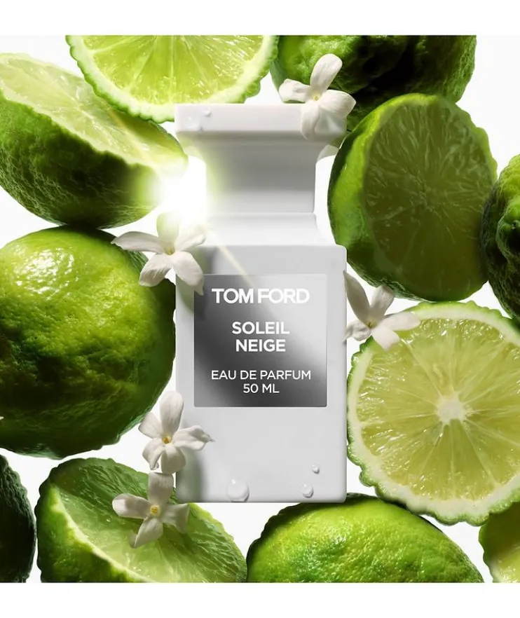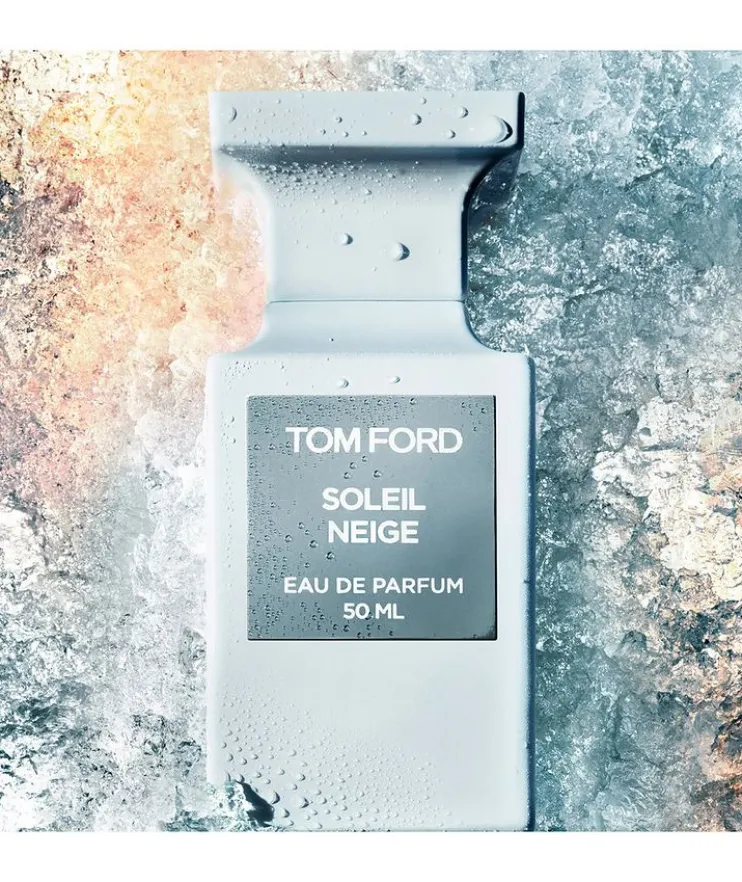 Soleil Neige (50 ml) is the bright side of Soleil, a polar expression to Soleil Blanc’s solar floral. Radiant with winter light, the scent mimics the shimmer of sun on snow.—TOM FORD