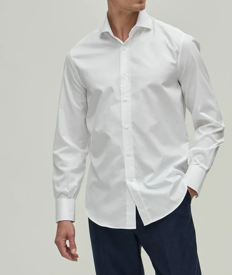 - This crisp white shirt from Brunello Cucinelli is the perfect foundation to sophisticated suiting. The pure cotton design is both lightweight and breathable, making it ideal for either a standalone look or under a suit jacket. It’s cut in the Italian house’s basic fit to ensure comfortability, while still retaining a tailored and refined appearance.