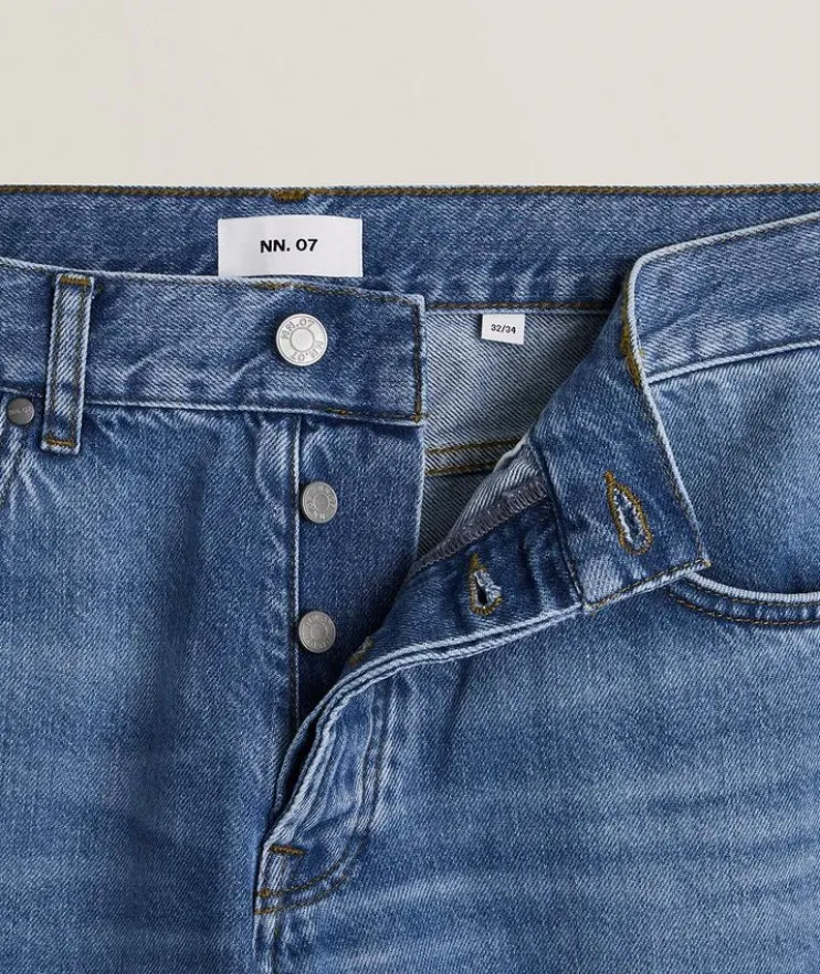 - A casual cool essential, these regular, straight-leg jeans are crafted from bleached, midweight organic cotton denim and feature five-pocket styling, a button fly and tonal embroidered stitching along the back pocket.