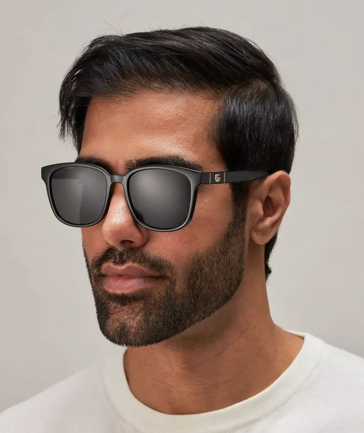 - Gucci takes a strong approach to eyewear, combining the best quality materials with exceptional design and craftsmanship. Eye-catching gold logos on the temples gives these glasses additional flair. Whether it’s the cottage, the beach, or simply going for an afternoon walk, take on the sun this season in style.