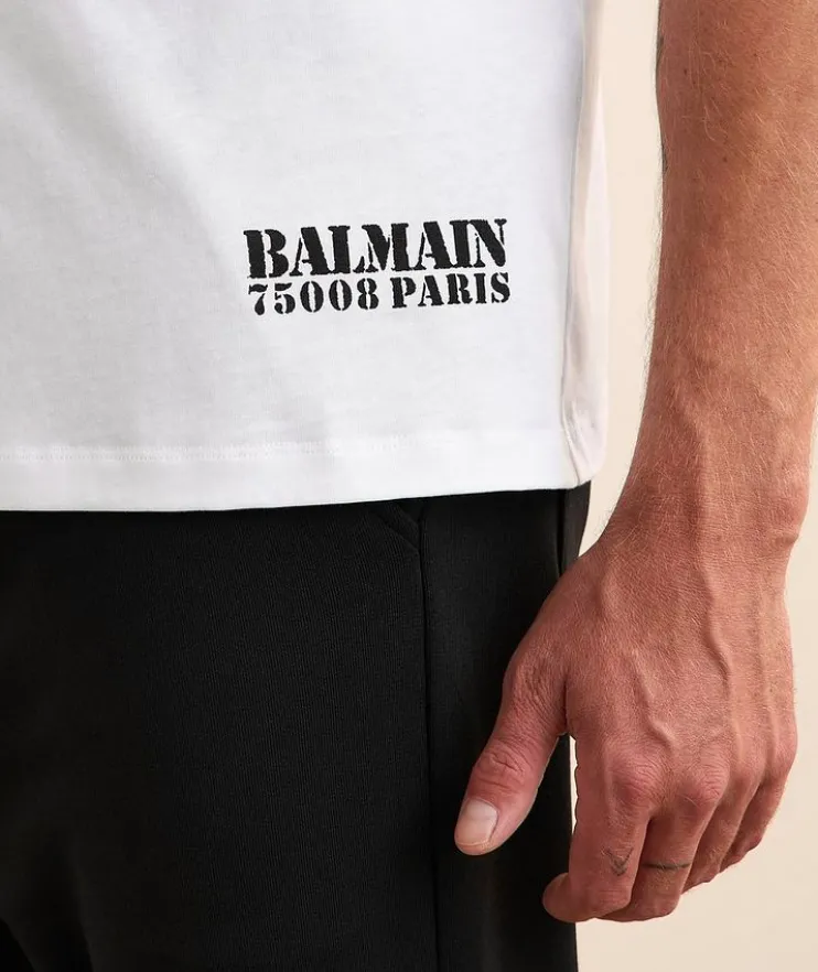 - A weekender classic, this crewneck T-shirt is crafted from ultra-soft cotton and boasts a stamp-style logo graphic print at the front hem for a subtle contemporary edge.