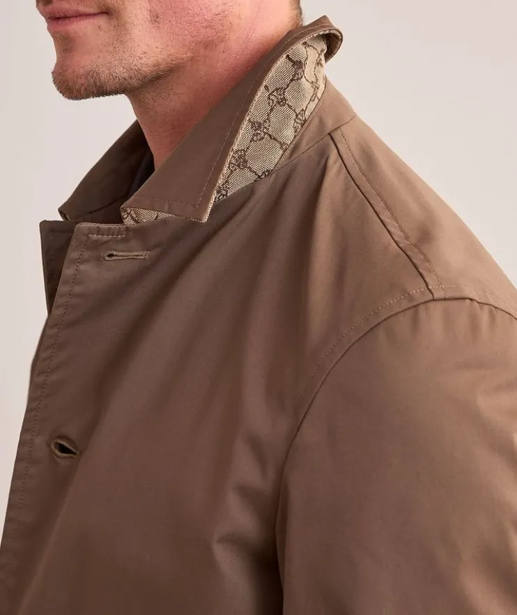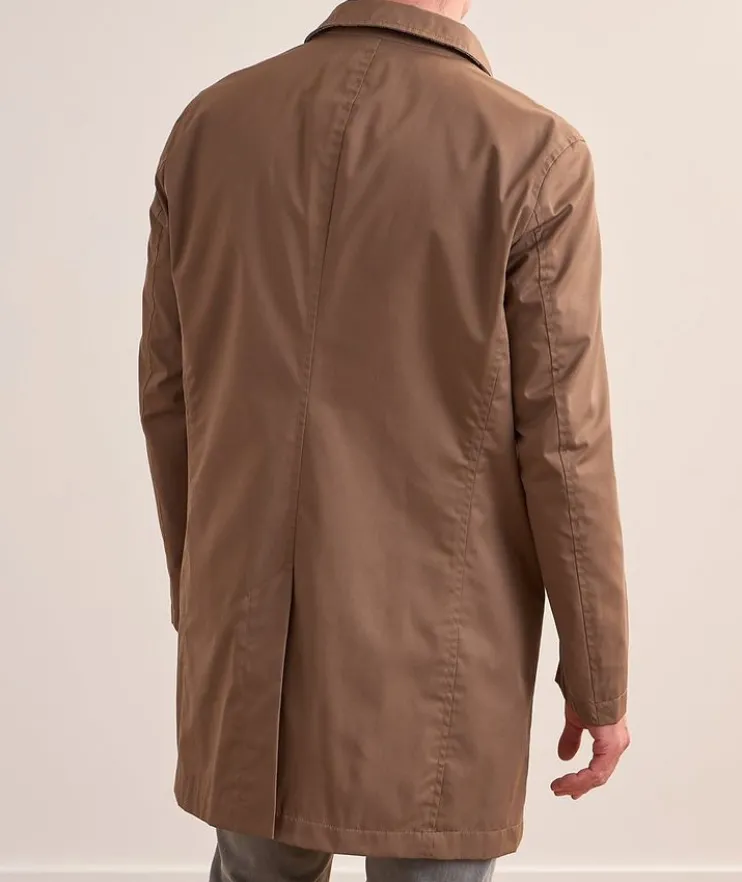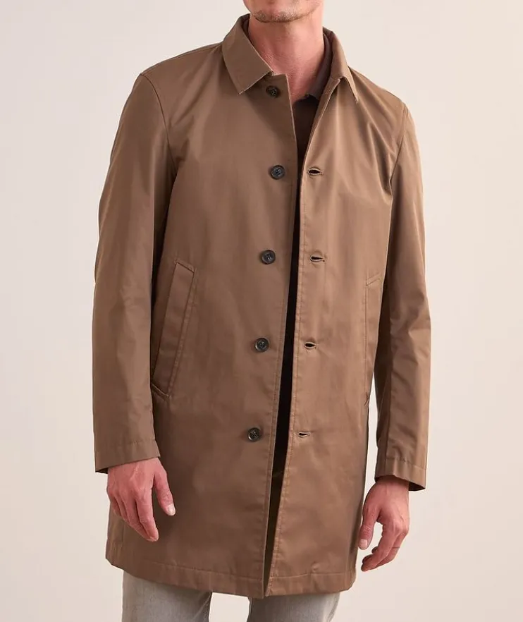 - This stylish rain jacket features a straight silhouette with a full-length button placket and slanted welt pockets for a classic design.