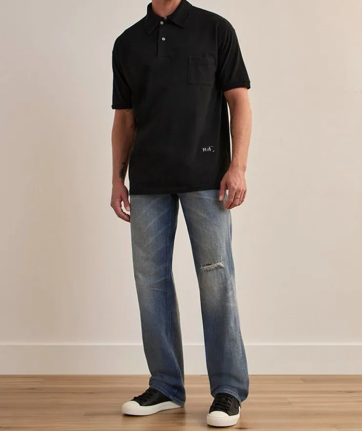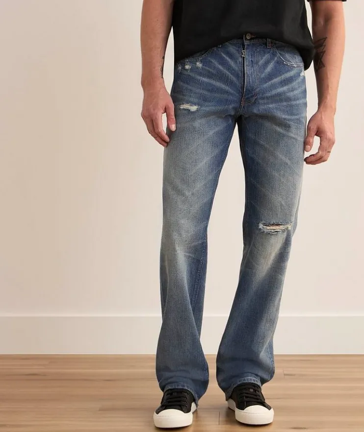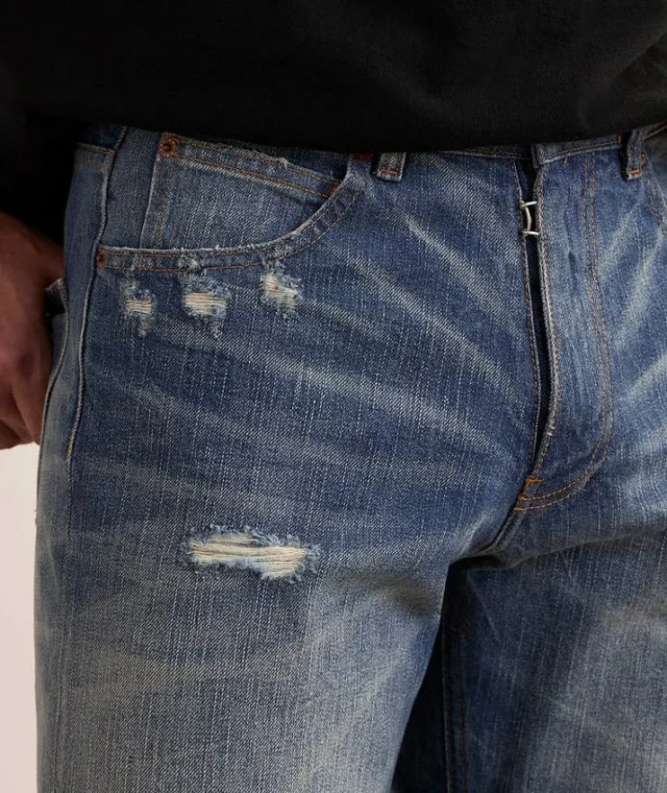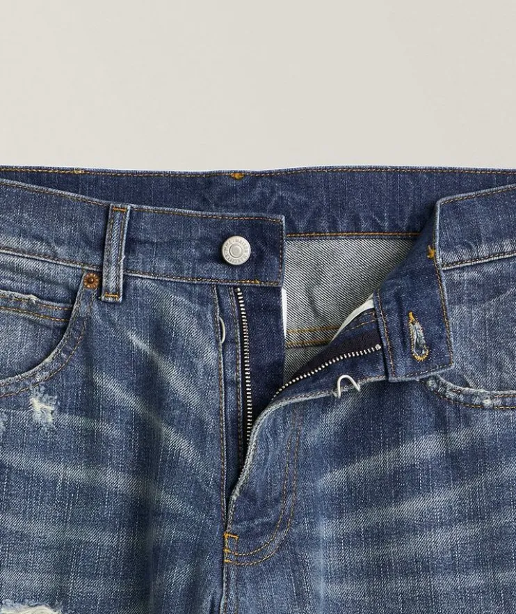 - Distressed with a twist, these on-trend jeans are crafted in soft cotton denim with a straight leg fit for timeless appeal.