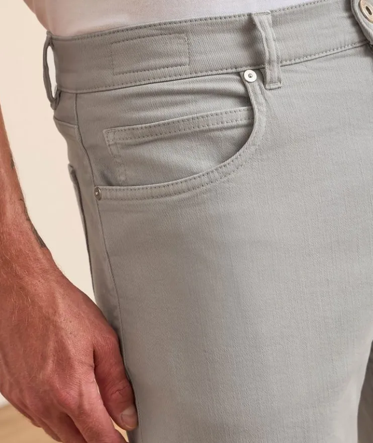 - These five-pocket pants are crafted from a stretchy cotton blend denim that allows for a more comfortable fit down the leg, making them an easy styling piece for casual outings.