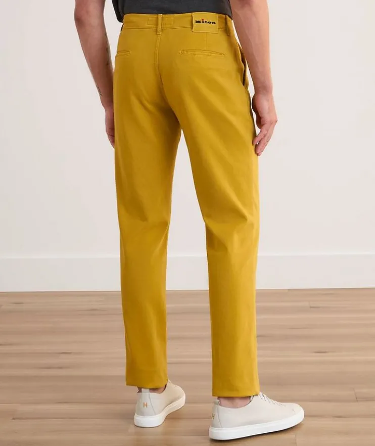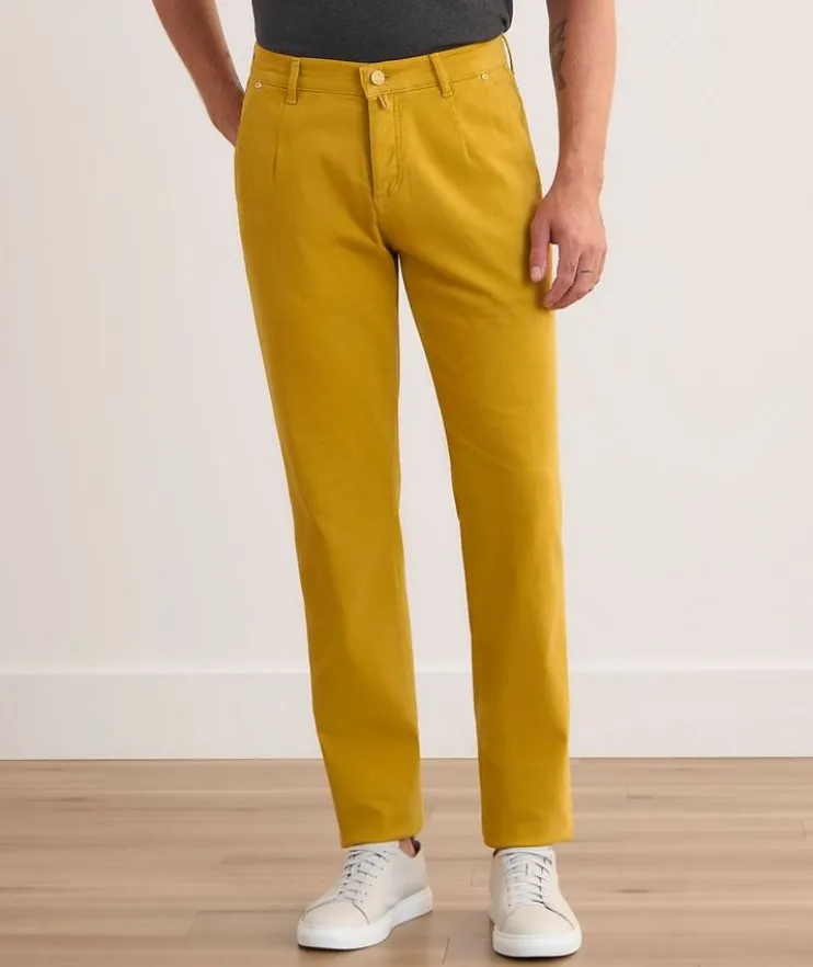 - These contemporary pants are crafted from cotton twill with stretch for comfort without compromising on fit. Tailored with a flat front and darts to create a flattering silhouette, these pants add modern elegance to any casual ensemble.