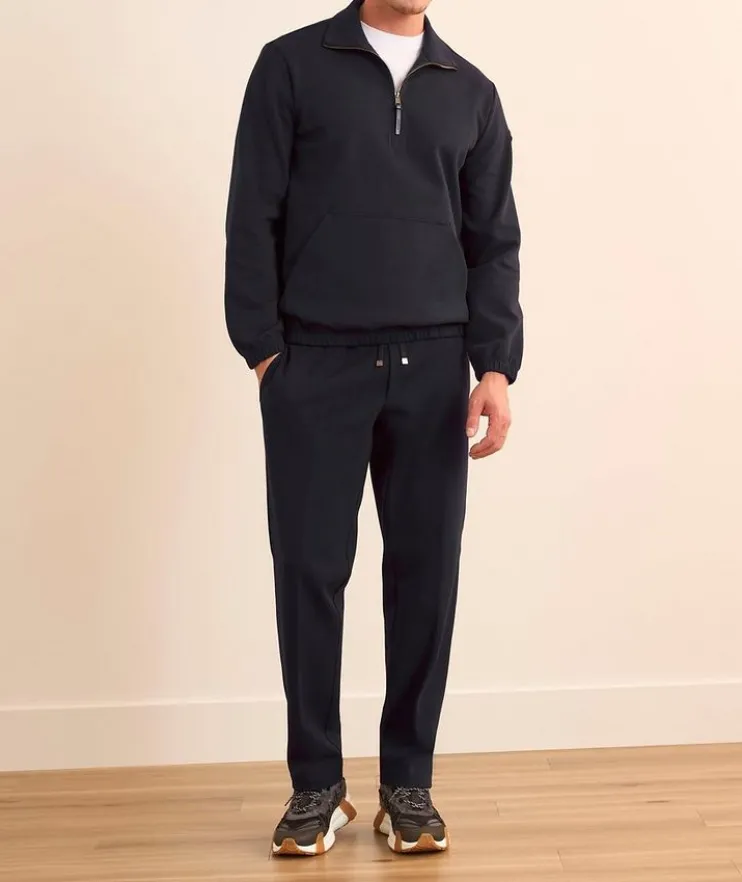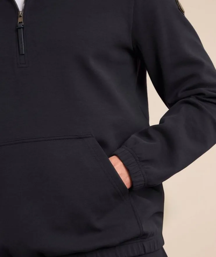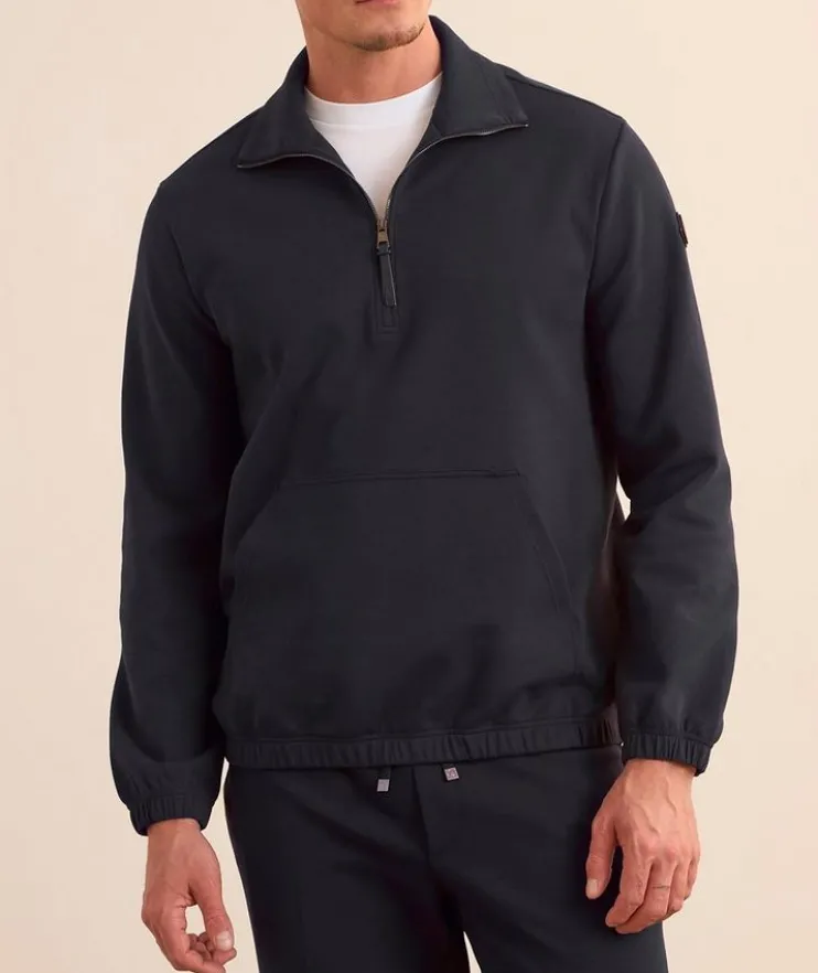 - An elevated loungewear piece, this contemporary sweatshirt is updated with a stand collar and half-zipper closure, and is crafted from a plush cotton blend with plenty of stretch.
