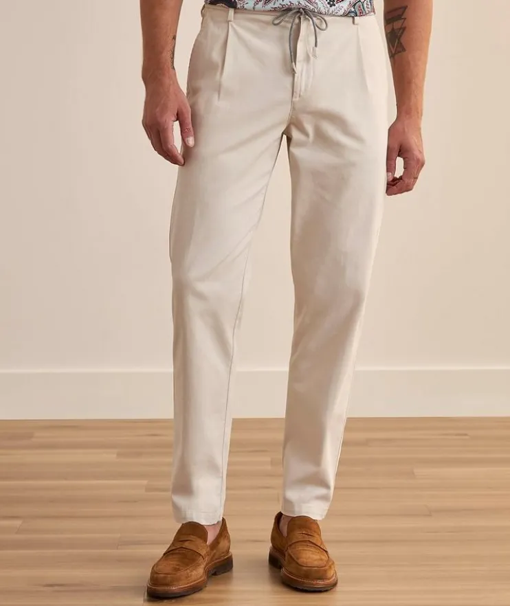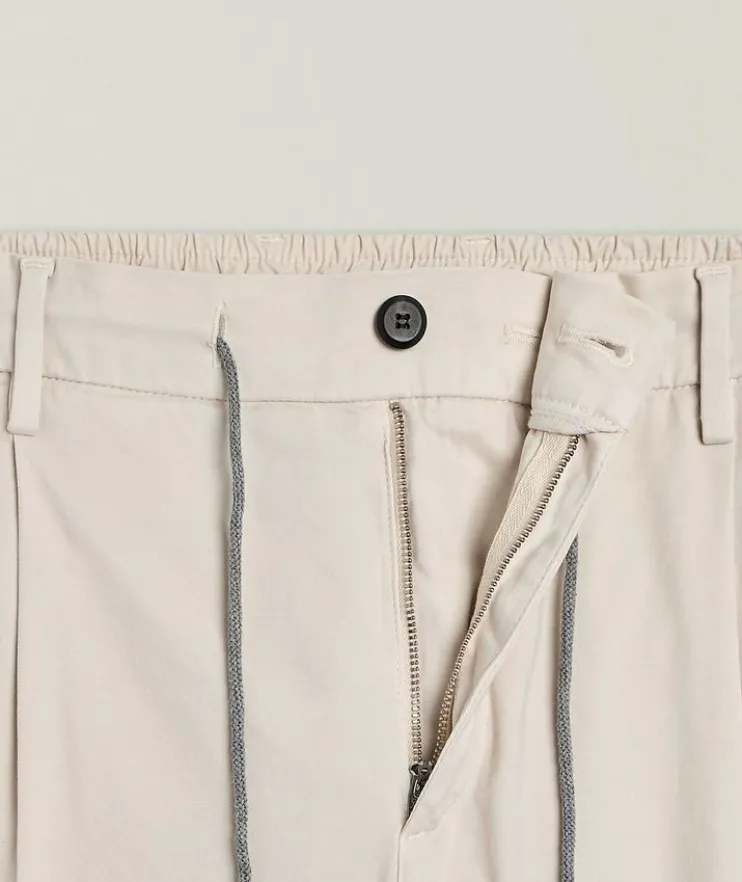 - These joggers combine casual and formal elements to create a versatile styling piece for every day wear. Crafted from soft cotton with stretch, these pants feature an elasticized waist with drawstring detail and pleated details at the waist to create a flattering silhouette.