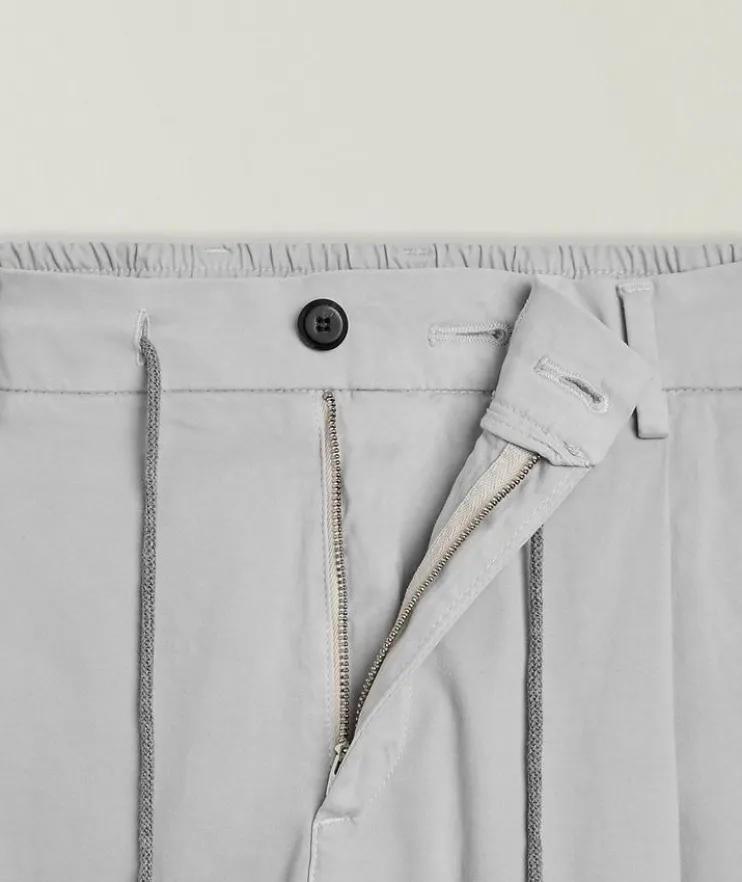 - These joggers combine casual and formal elements to create a versatile styling piece for everyday wear. Crafted from soft cotton with stretch, these pants feature an elasticized waist with drawstring detail and pleated details at the waist to create a flattering silhouette.