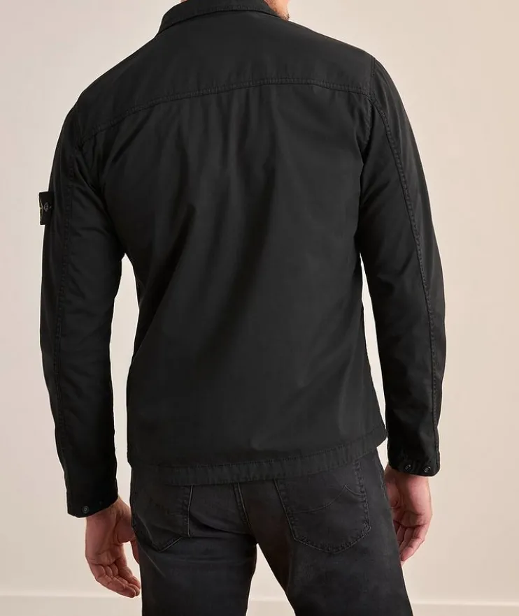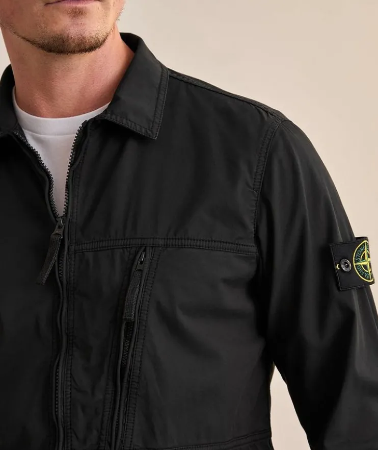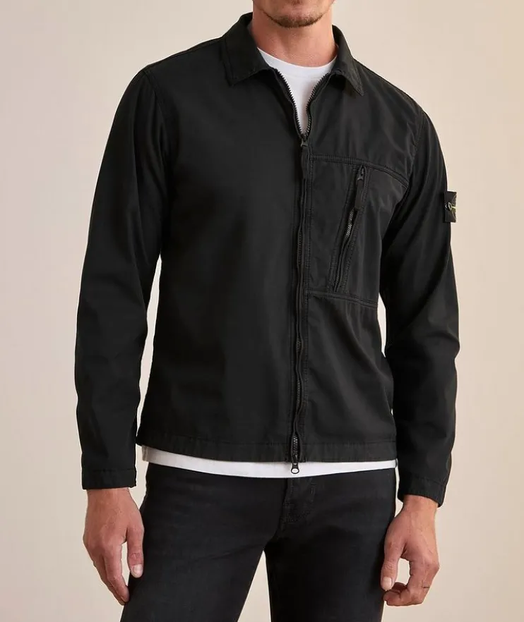 - This contemporary overshirt is crafted from cotton twill with a touch of stretch for added comfort and movability. This easy layering piece is decorated with exposed zippers and the brand’s compass logo band at the sleeve.
