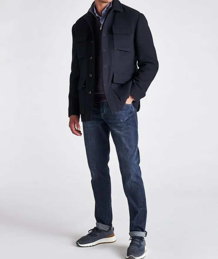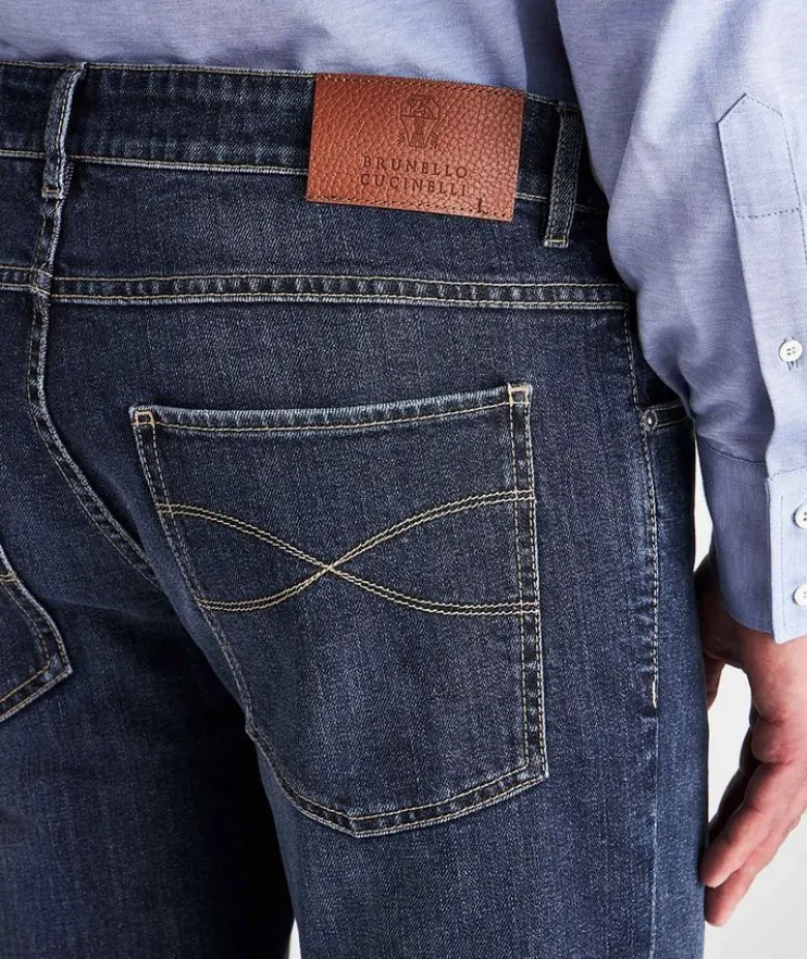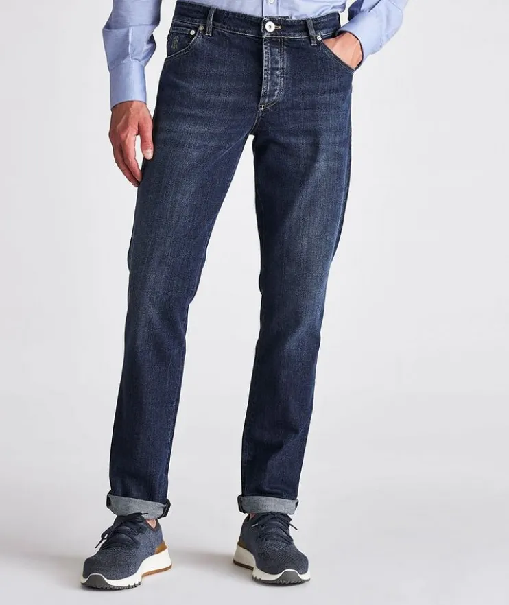 - Only Brunello Cucinelli could compose such a modern and timeless style of comfortable casual elegance. Crafted exquisitely in Italy from stretch-cotton any man can look equal parts sophisticated in these high-rise jeans, with their slim fit and classic denim enriches the five-pocket style. Finish this look off with any classic tee or dress shirt, sneaker or dress shoe—once you invest in these, anything goes.
