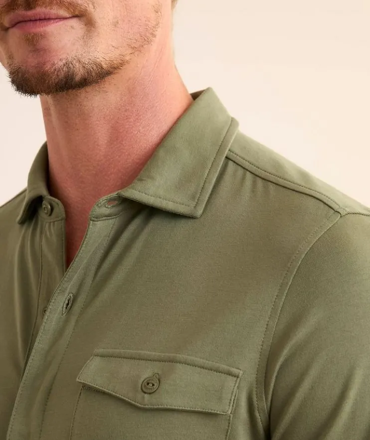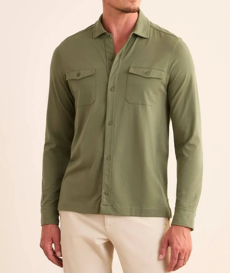 - Cut from the finest Peruvian Pima cotton-stretch jersey and designed with two-flap chest pockets, this military-inspired overshirt offers the look of a classic button-up style with the comfort and softness of your favourite t-shirt.