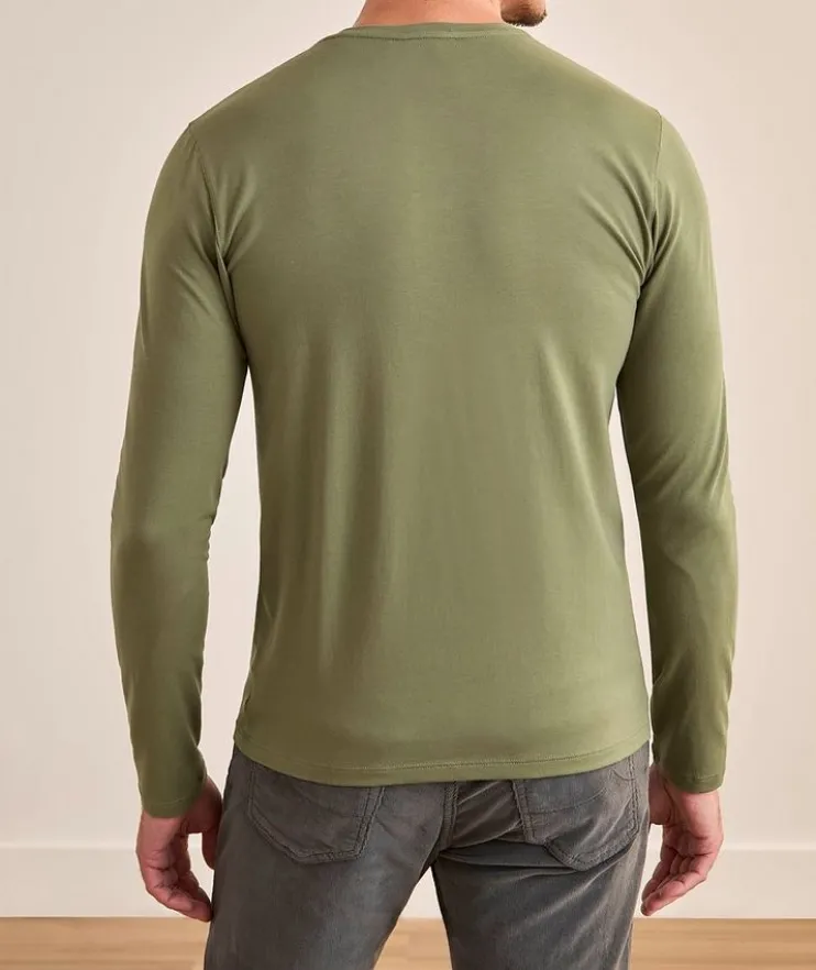 - Crafted from the finest Peruvian Pima cotton stretch jersey, this year-round essential boasts a classic design with exceptional quality. Detailed with a soft ribbed crewneck and long-sleeve silhouette, this versatile t-shirt provides maximum comfort and effortless style.